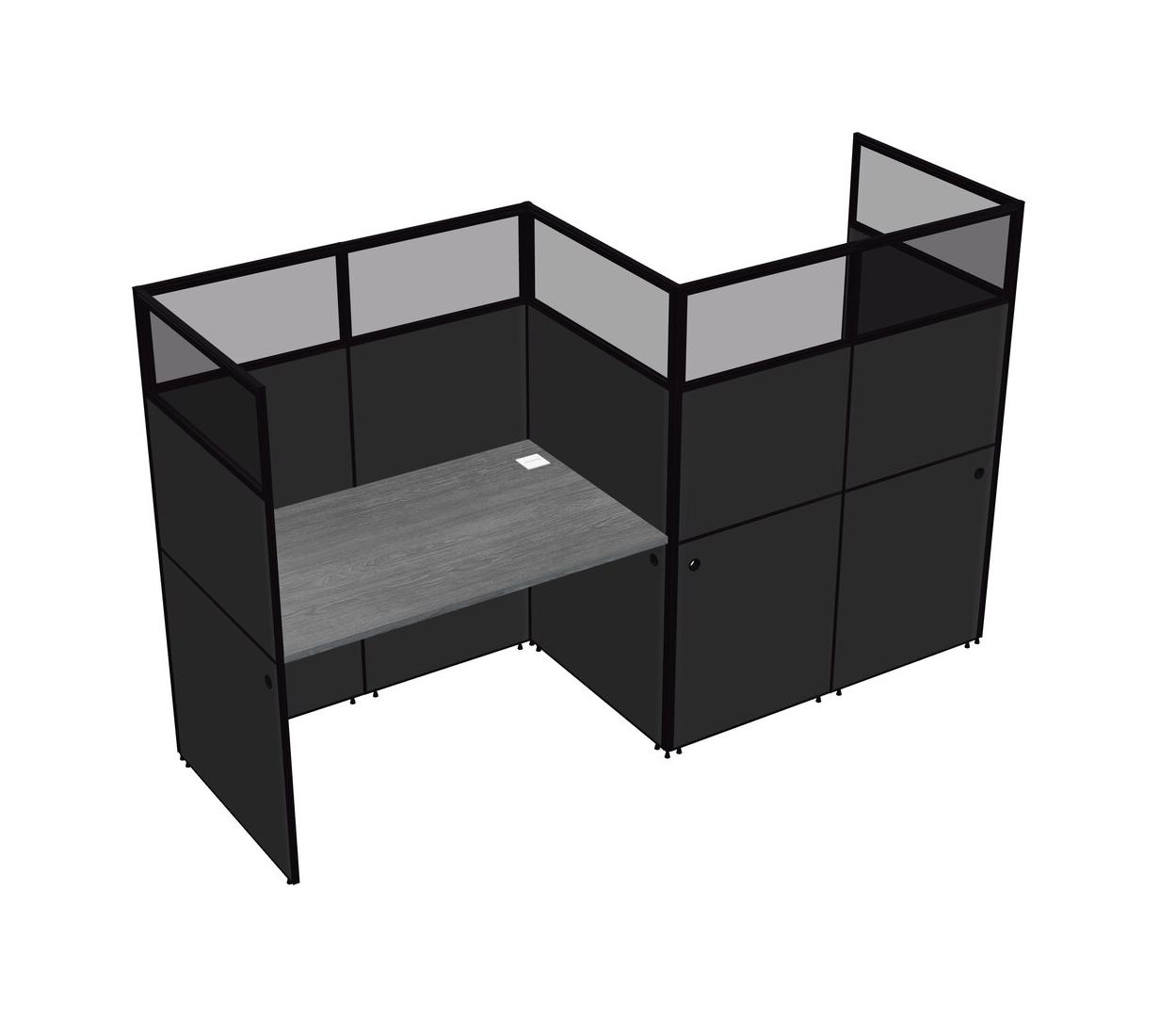 Grey Rectangular Cubicle Workstations For 2 - Zigzag Formation