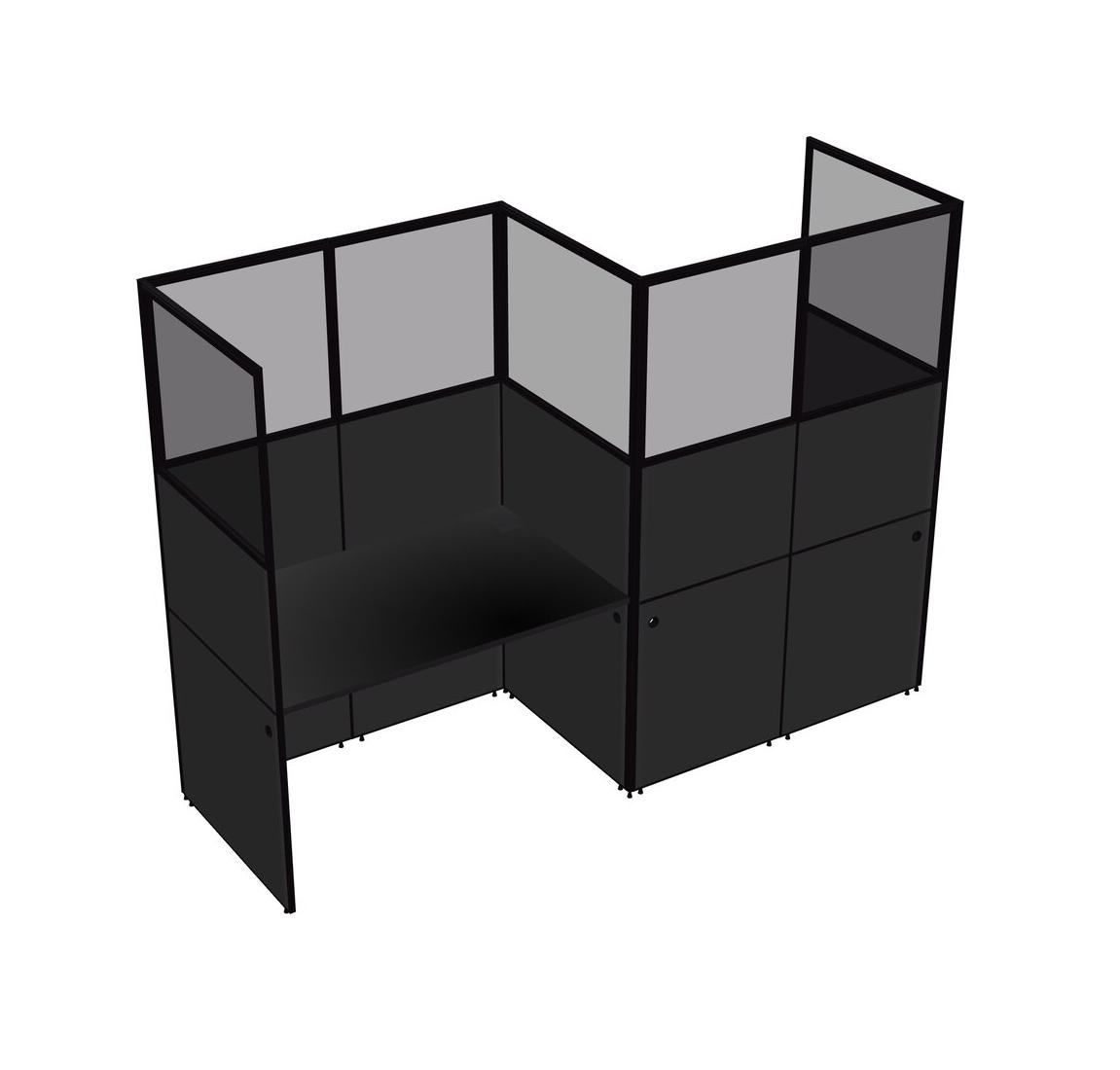 Black Rectangular Cubicle Workstations For 2 - Zigzag Formation