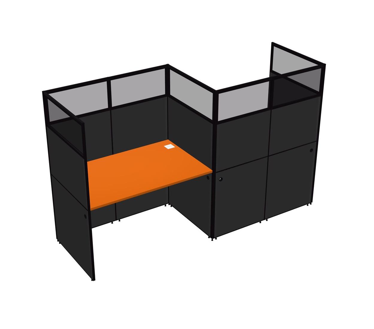 Orange Rectangular Cubicle Workstations For 2 - Zigzag Formation