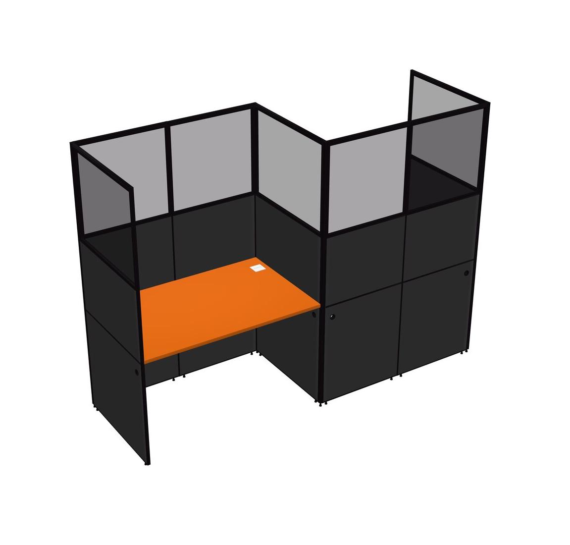 Orange Rectangular Cubicle Workstations For 2 - Zigzag Formation