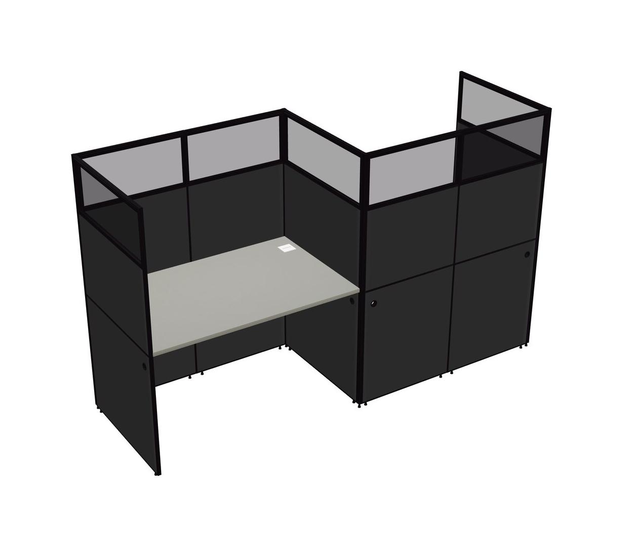 Grey Shadows Rectangular Cubicle Workstations For 2 - Zigzag Formation