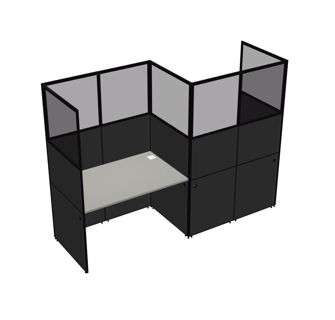 Grey Shadows Rectangular Cubicle Workstations For 2 - Zigzag Formation