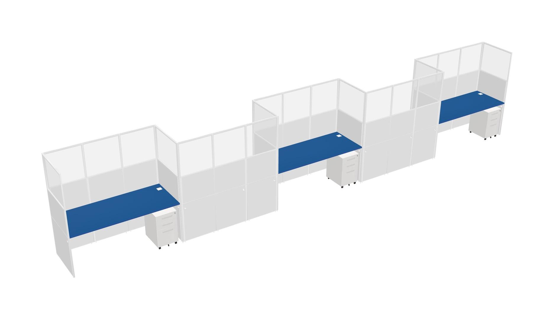 Prism Blue Rectangular Cubicle Workstations For 5 - Zigzag Formation + White Metal Mobile Drawers