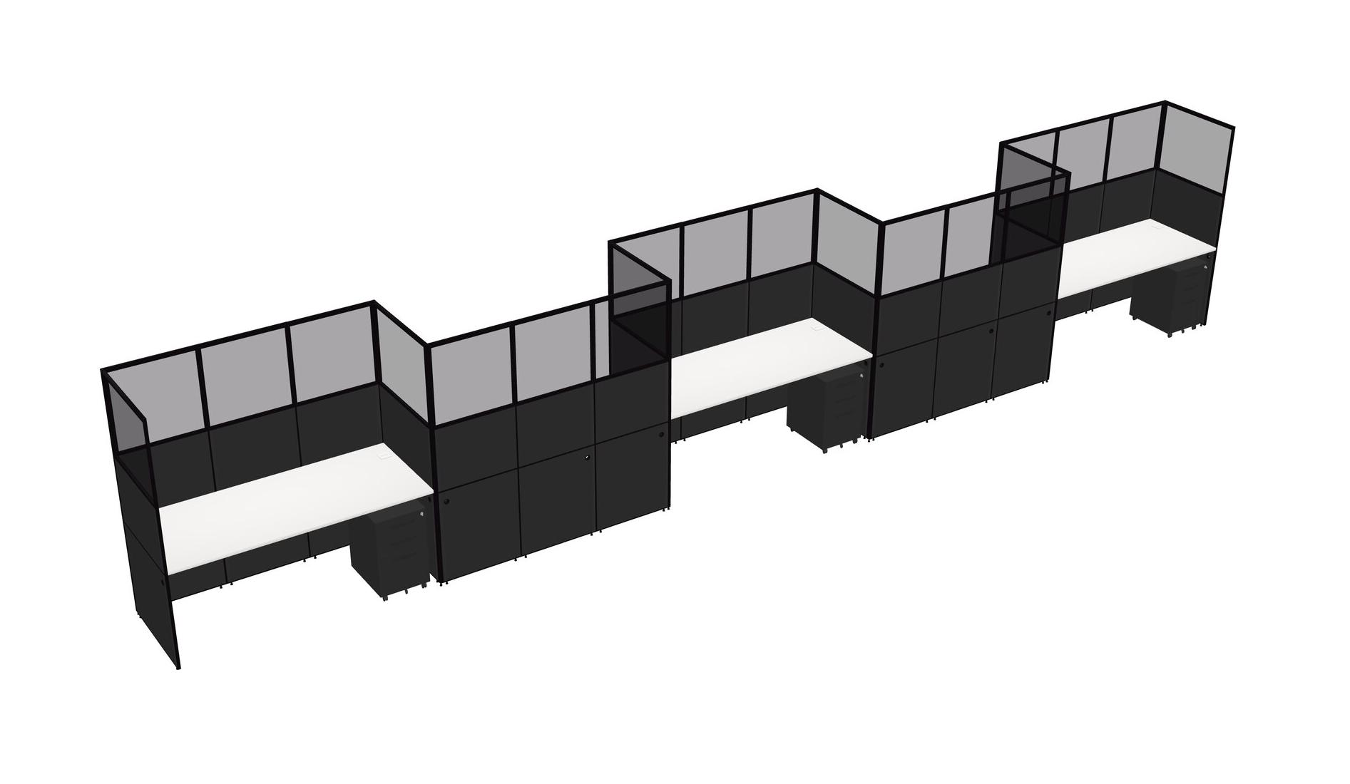 White Rectangular Cubicle Workstations For 5 - Zigzag Formation + Black Metal Mobile Drawers