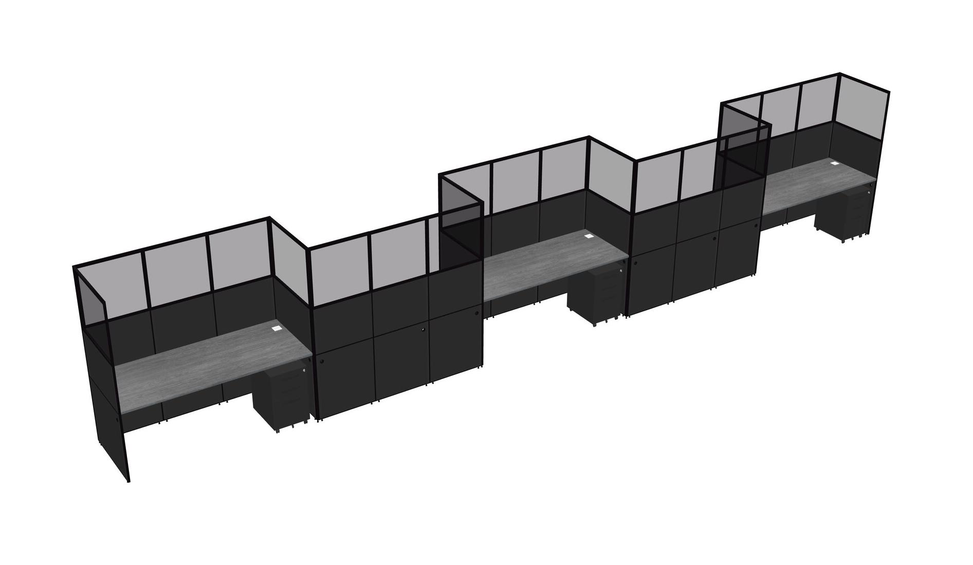 Grey Rectangular Cubicle Workstations For 5 - Zigzag Formation + Black Metal Mobile Drawers