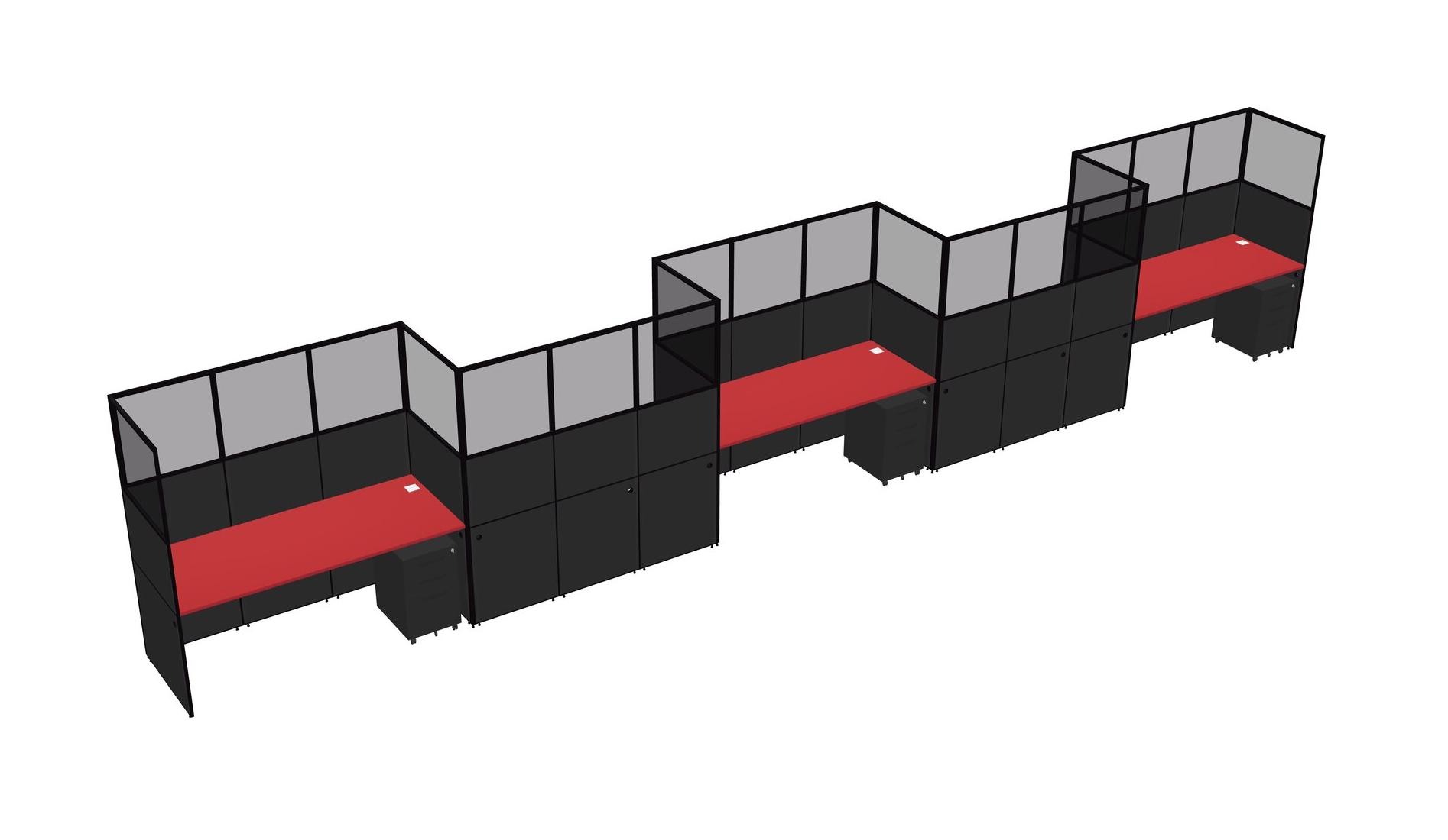 Prism Red Rectangular Cubicle Workstations For 5 - Zigzag Formation + Black Metal Mobile Drawers