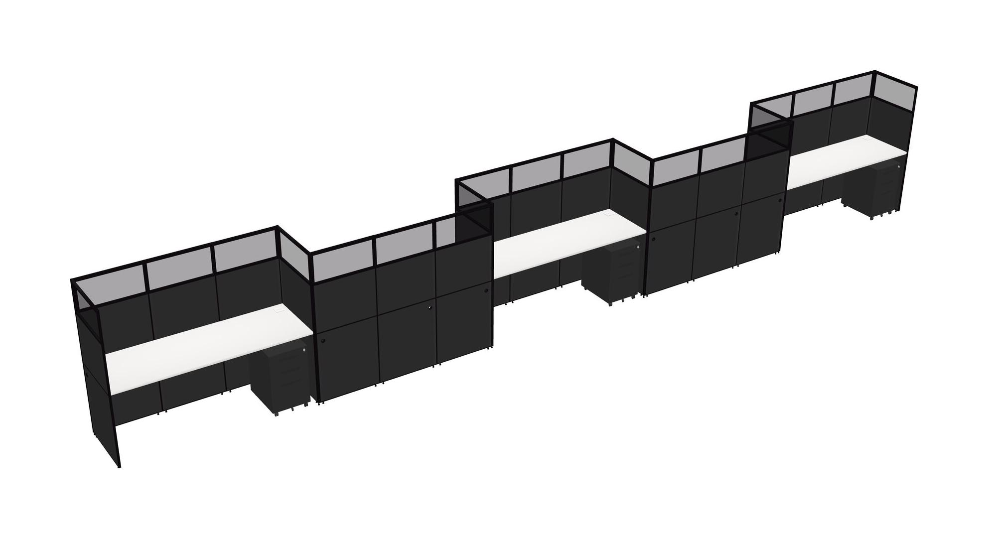 White Rectangular Cubicle Workstations For 5 - Zigzag Formation + Black Metal Mobile Drawers