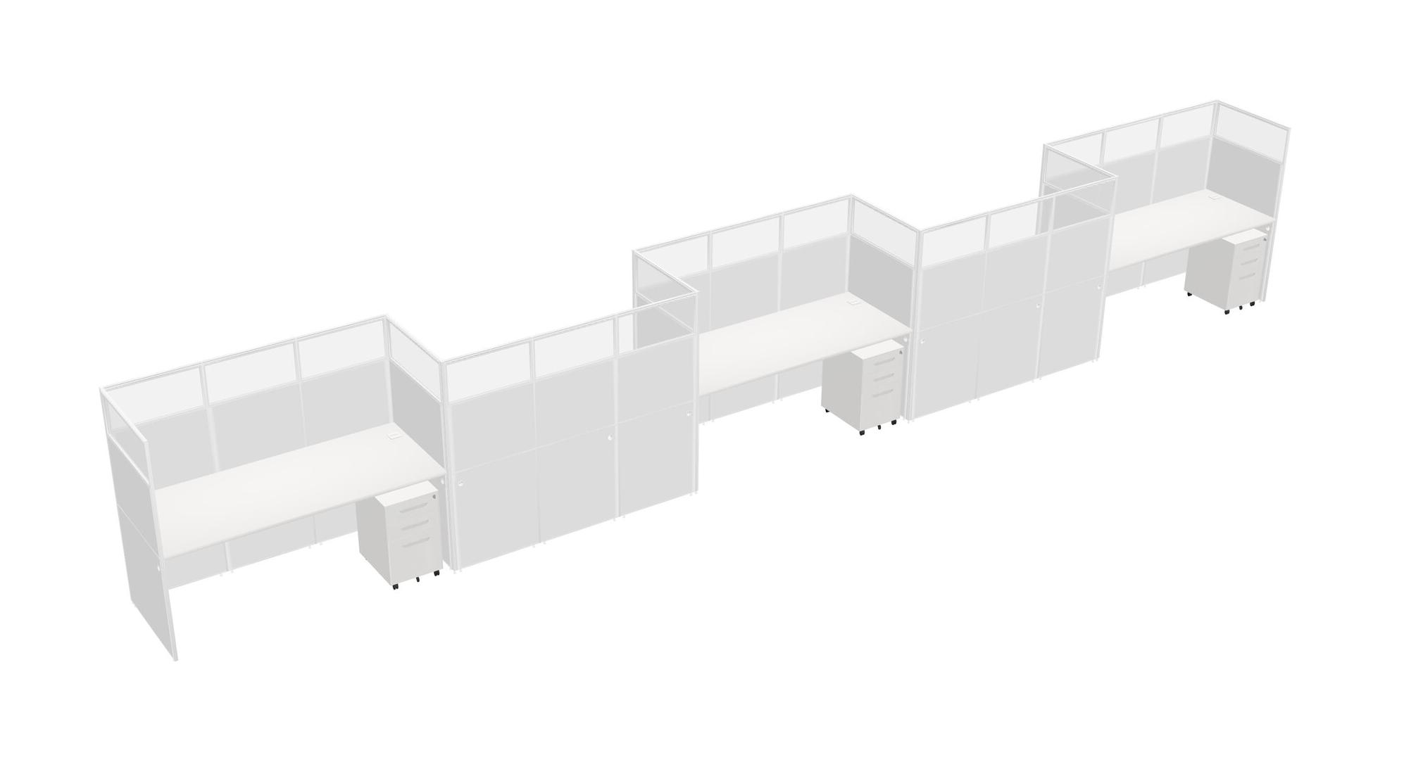 White Rectangular Cubicle Workstations For 5 - Zigzag Formation + White Metal Mobile Drawers