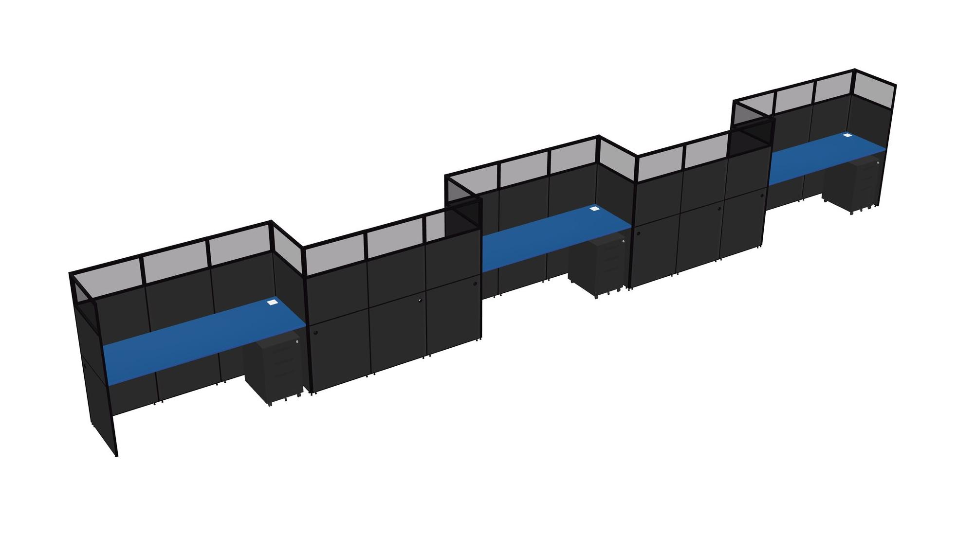 Prism Blue Rectangular Cubicle Workstations For 5 - Zigzag Formation + Black Metal Mobile Drawers