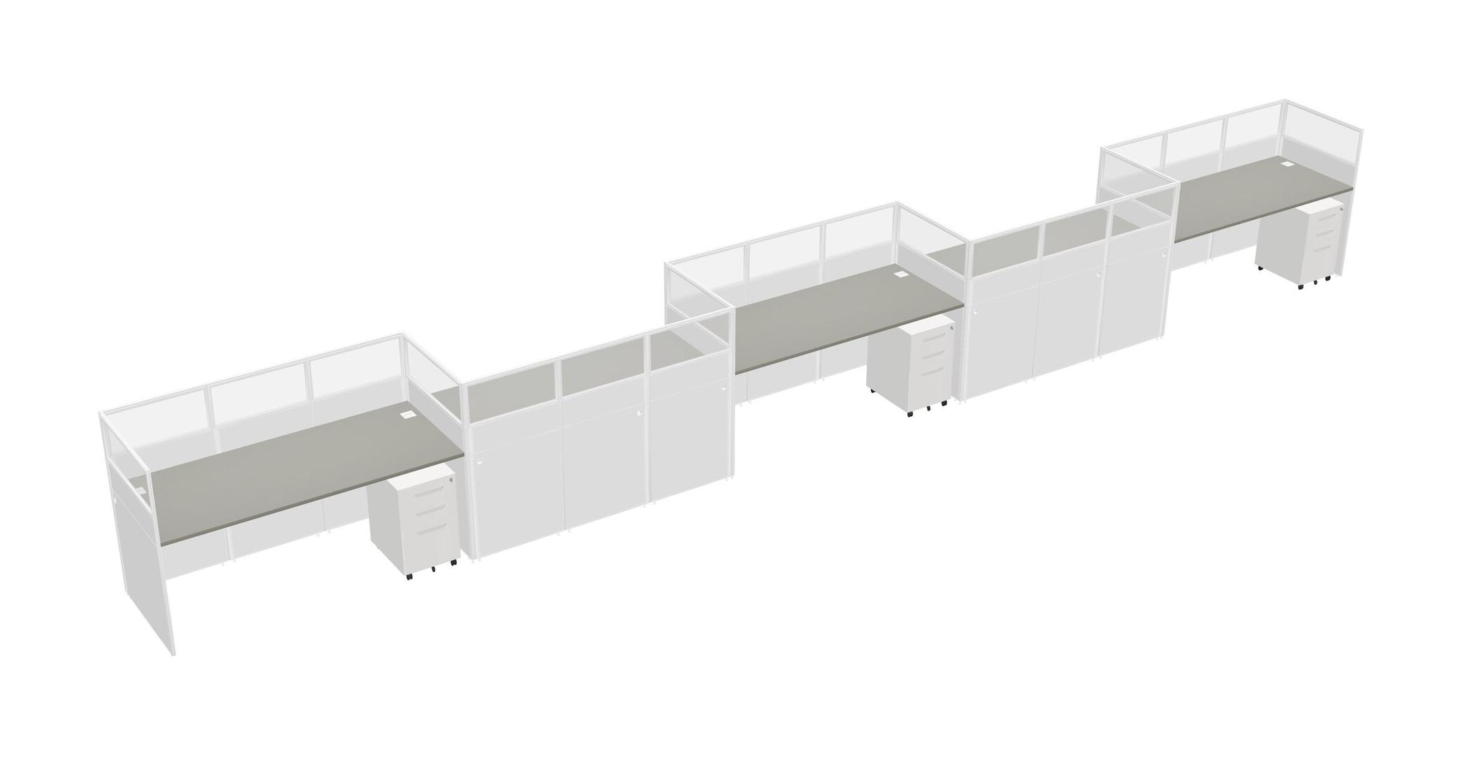 Grey Shadows Rectangular Cubicle Workstations For 5 - Zigzag Formation + White Metal Mobile Drawers