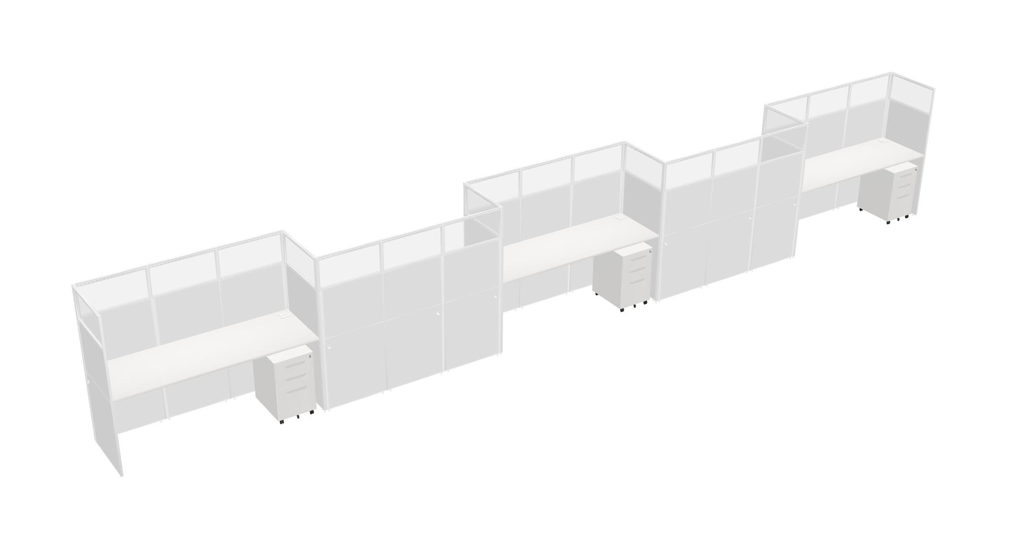 White Rectangular Cubicle Workstations For 5 - Zigzag Formation + White Metal Mobile Drawers