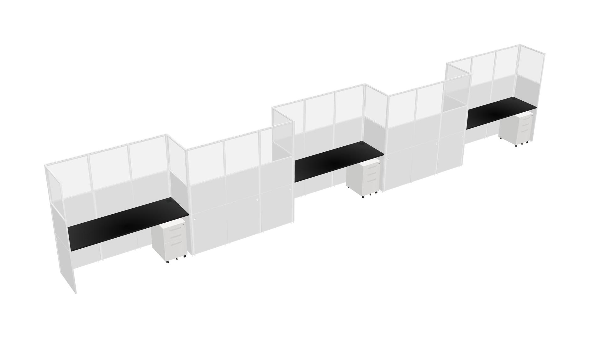 Black Rectangular Cubicle Workstations For 5 - Zigzag Formation + White Metal Mobile Drawers
