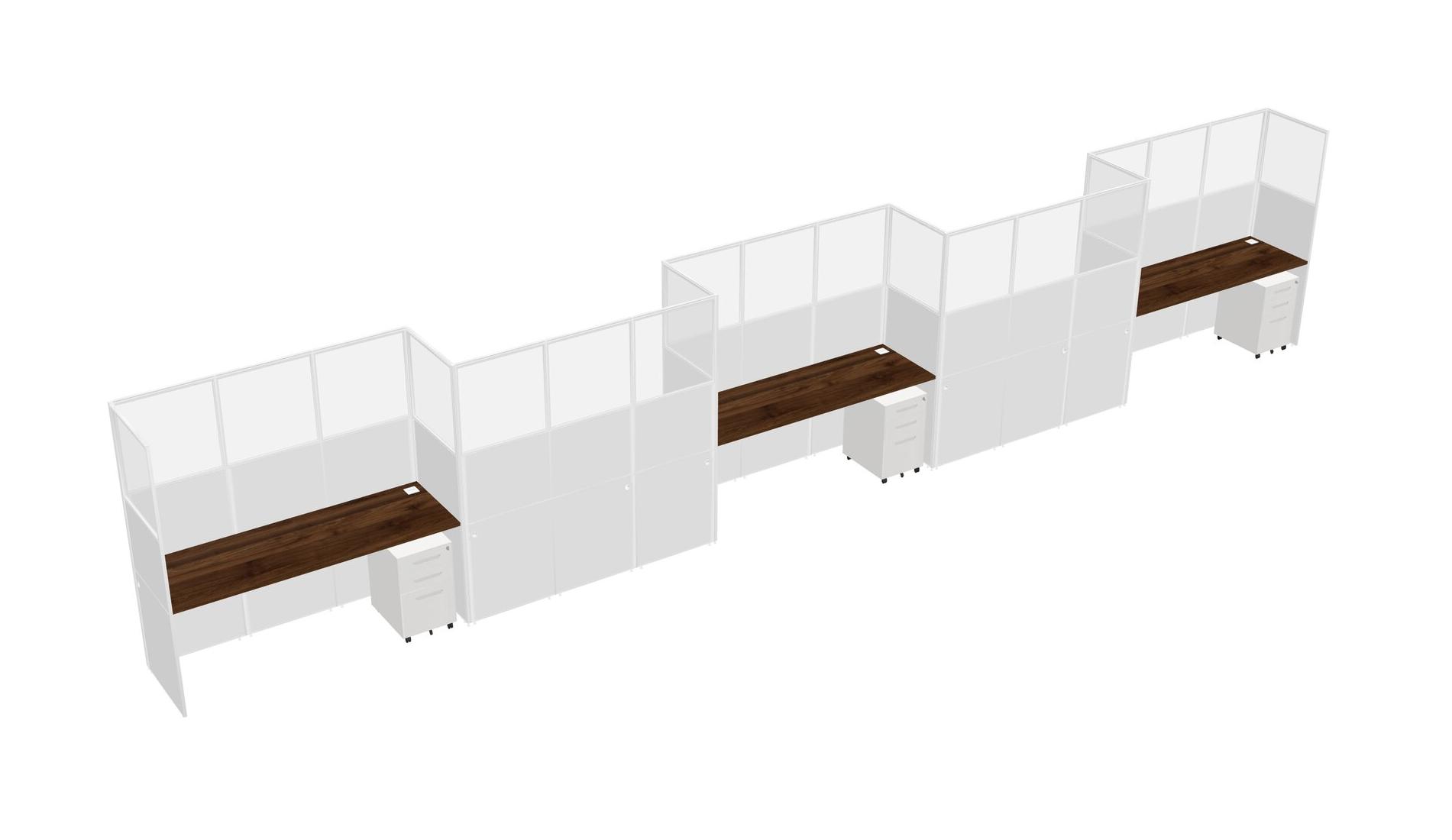 Columbia Walnut Rectangular Cubicle Workstations For 5 - Zigzag Formation + White Metal Mobile Drawers