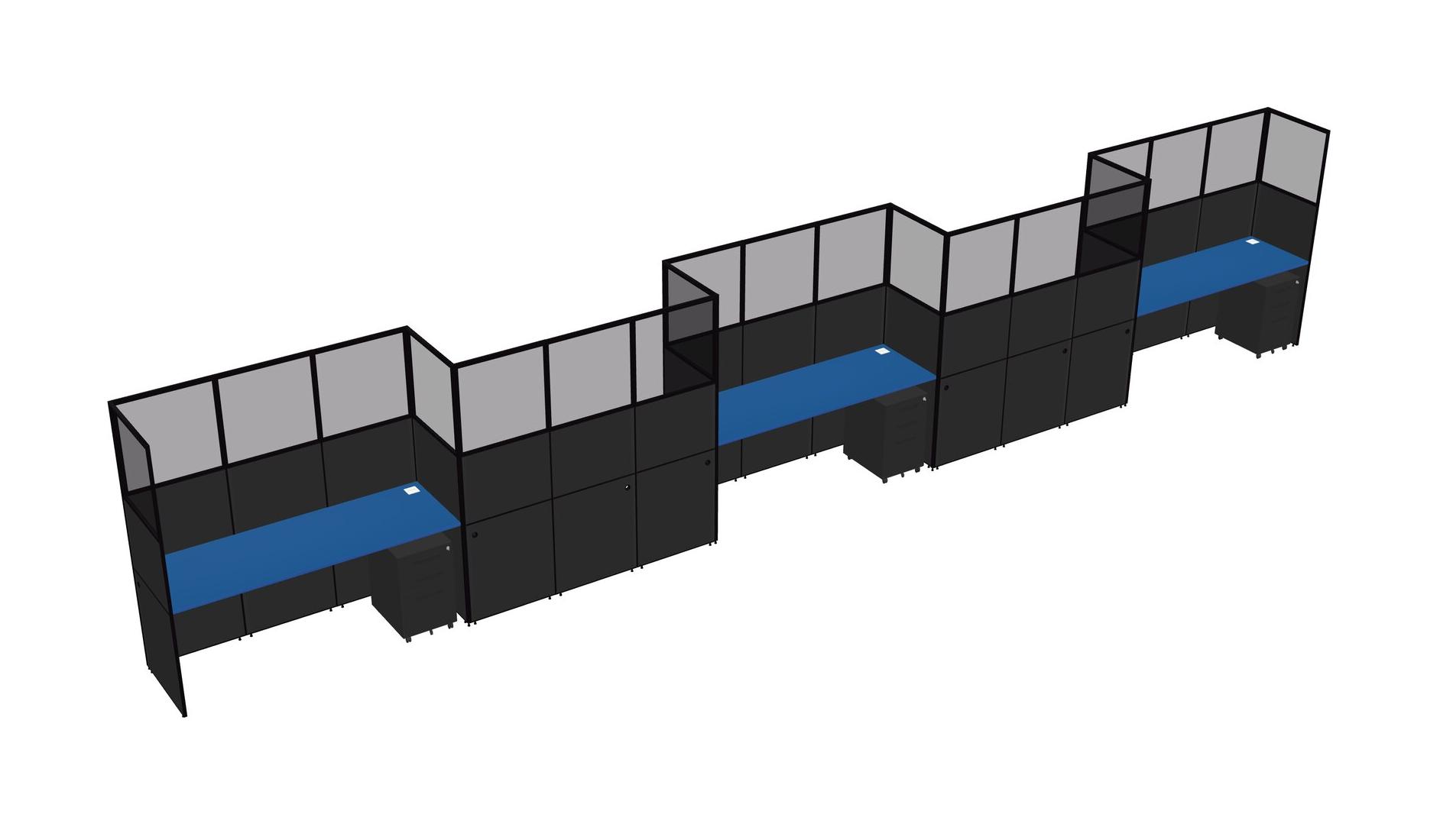 Prism Blue Rectangular Cubicle Workstations For 5 - Zigzag Formation + Black Metal Mobile Drawers