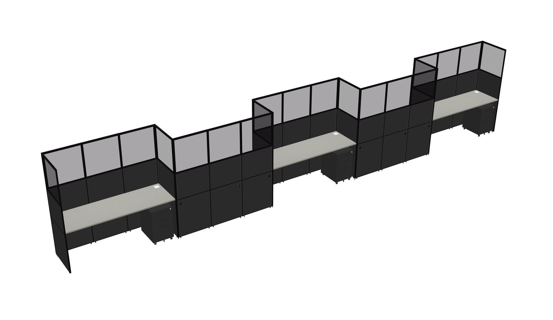 Grey Shadows Rectangular Cubicle Workstations For 5 - Zigzag Formation + Black Metal Mobile Drawers