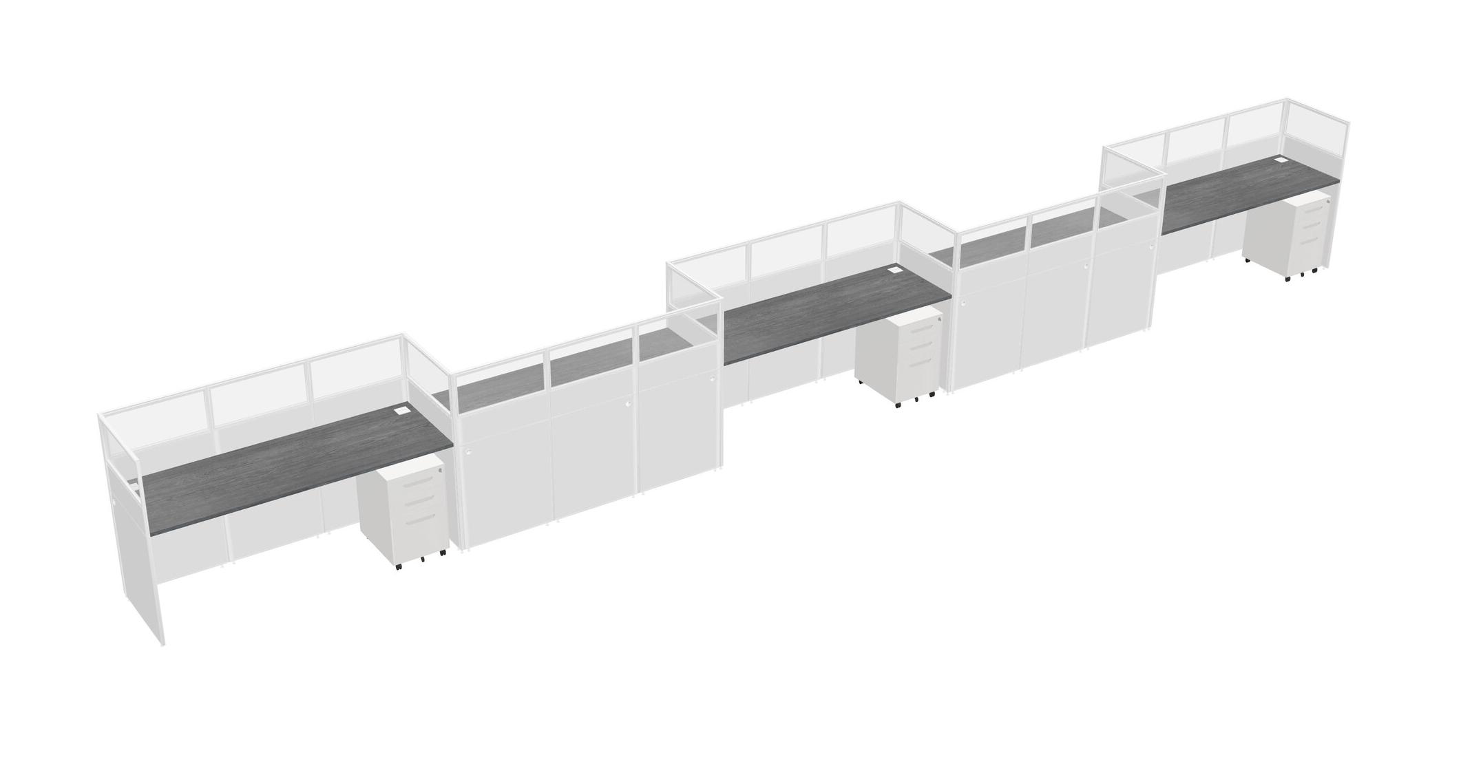 Grey Rectangular Cubicle Workstations For 5 - Zigzag Formation + White Metal Mobile Drawers