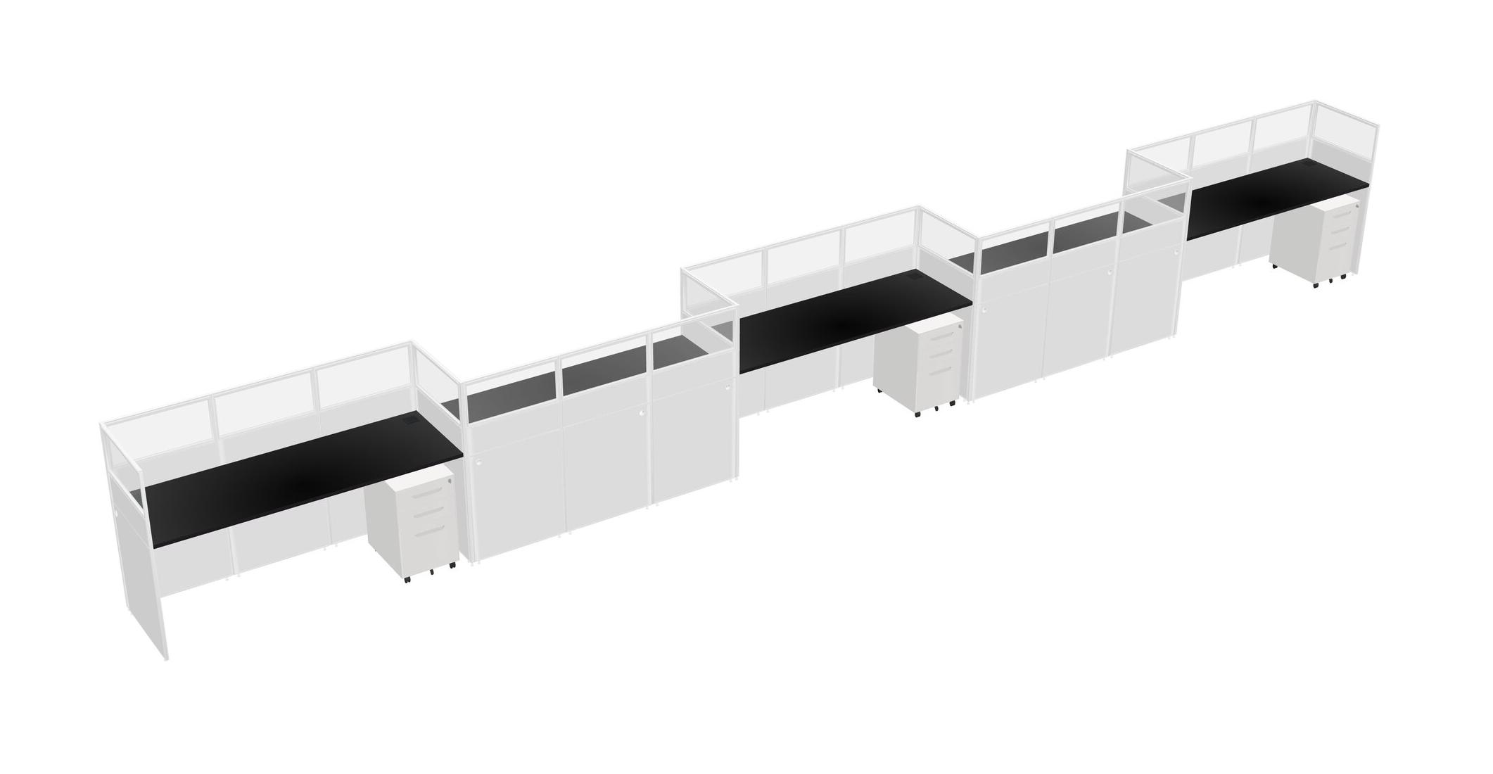Black Rectangular Cubicle Workstations For 5 - Zigzag Formation + White Metal Mobile Drawers