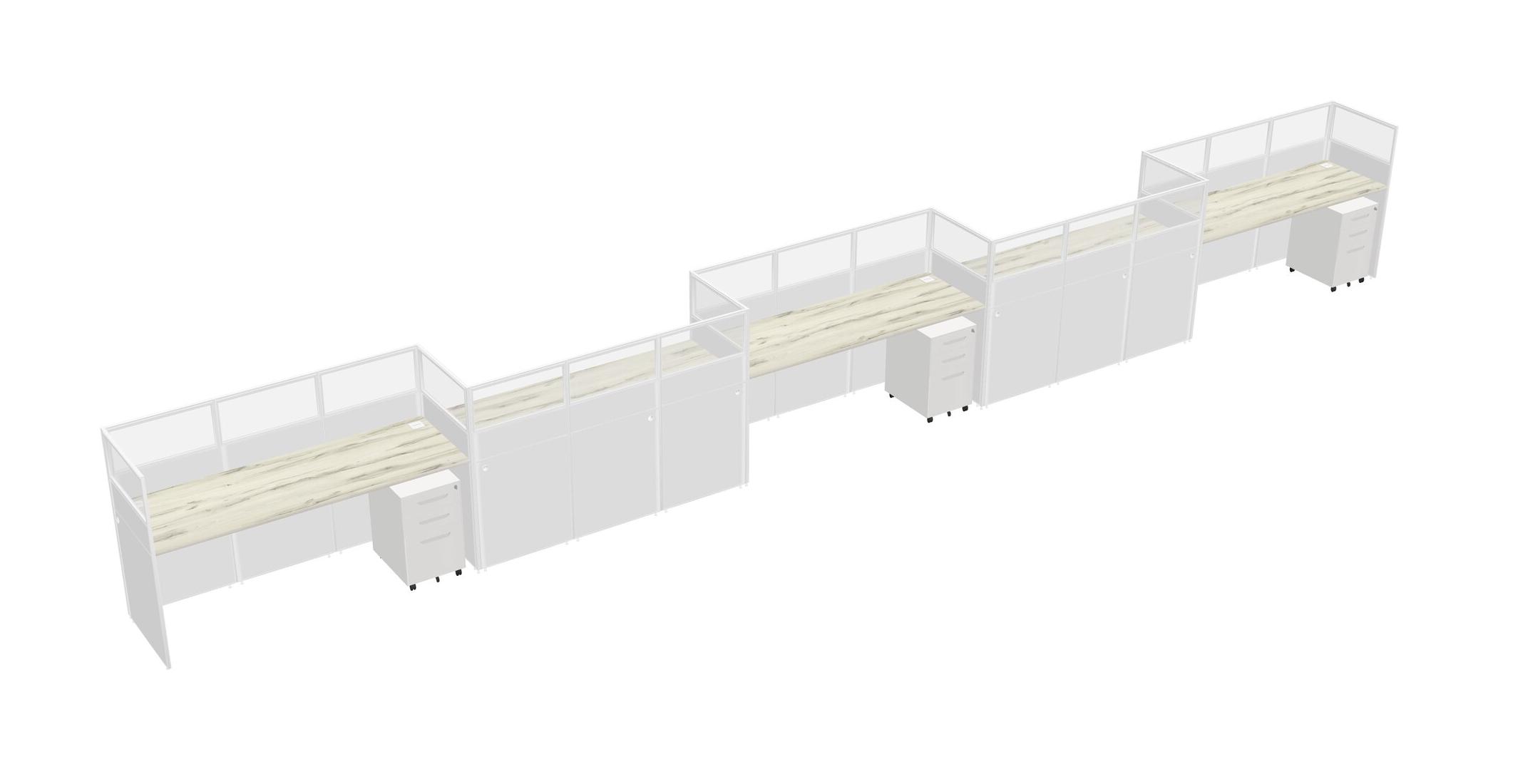 Heinne Holz Rectangular Cubicle Workstations For 5 - Zigzag Formation + White Metal Mobile Drawers