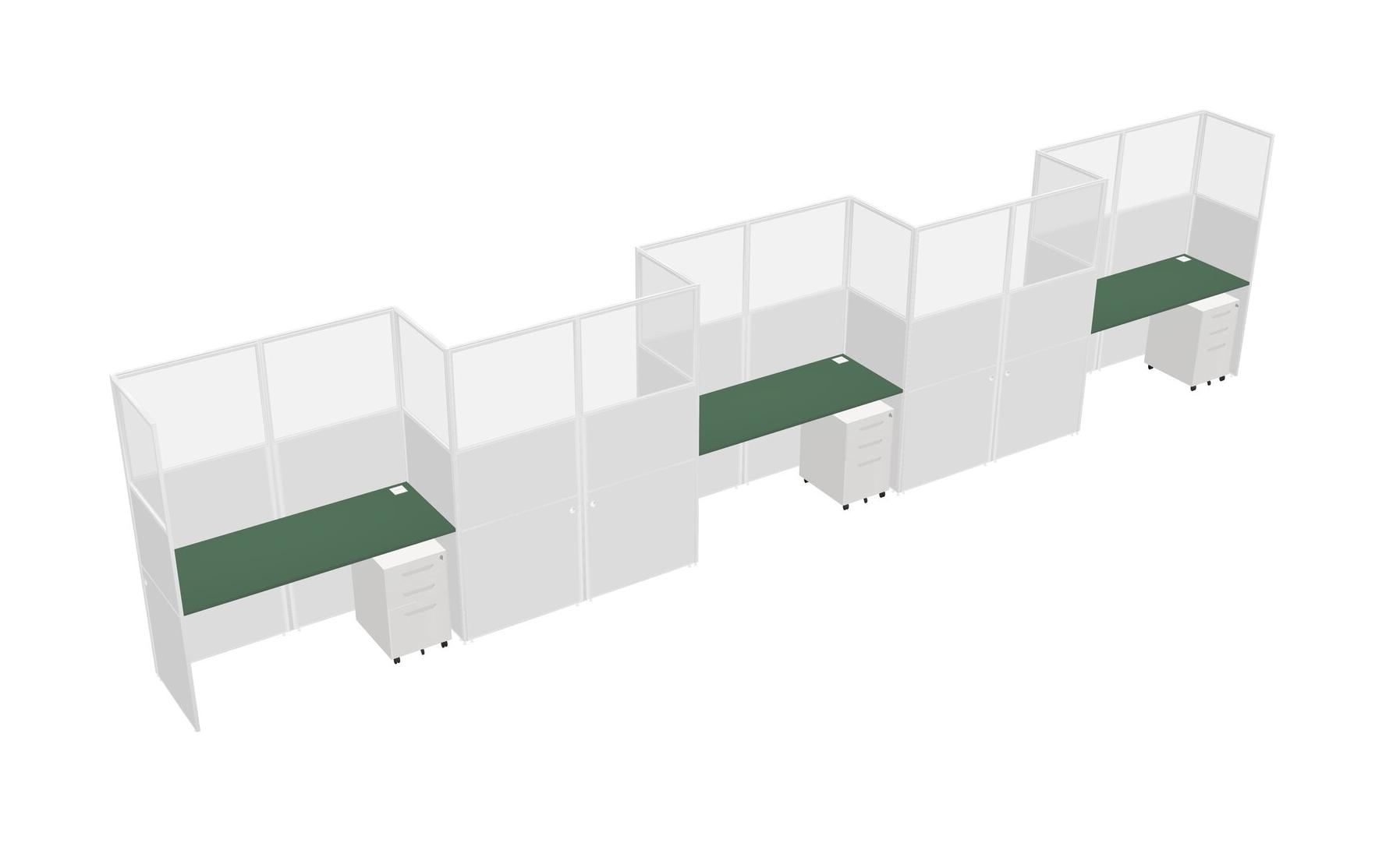 Green Rectangular Cubicle Workstations For 5 - Zigzag Formation + White Metal Mobile Drawers