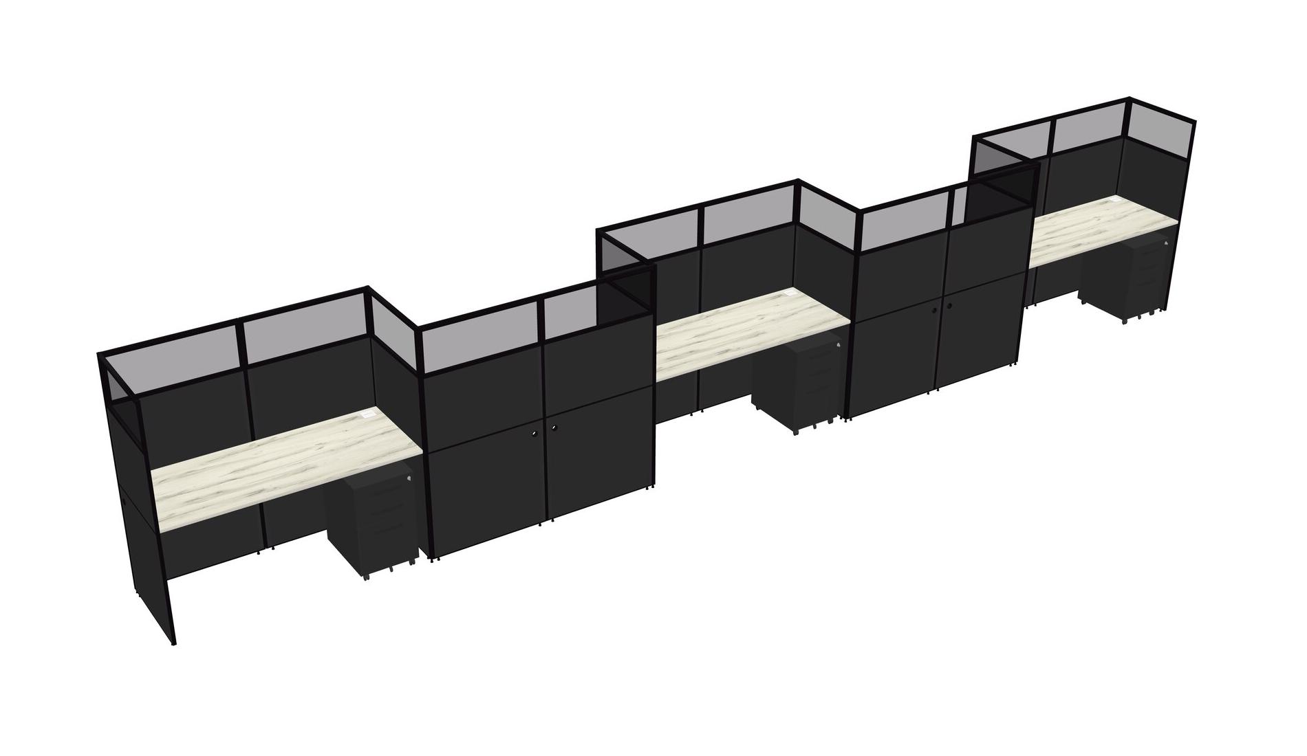 Heinne Holz Rectangular Cubicle Workstations For 5 - Zigzag Formation + Black Metal Mobile Drawers