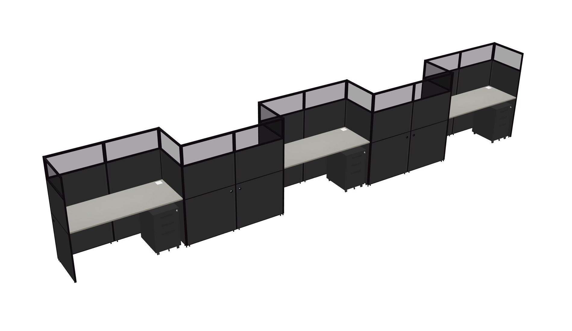 Grey Shadows Rectangular Cubicle Workstations For 5 - Zigzag Formation + Black Metal Mobile Drawers