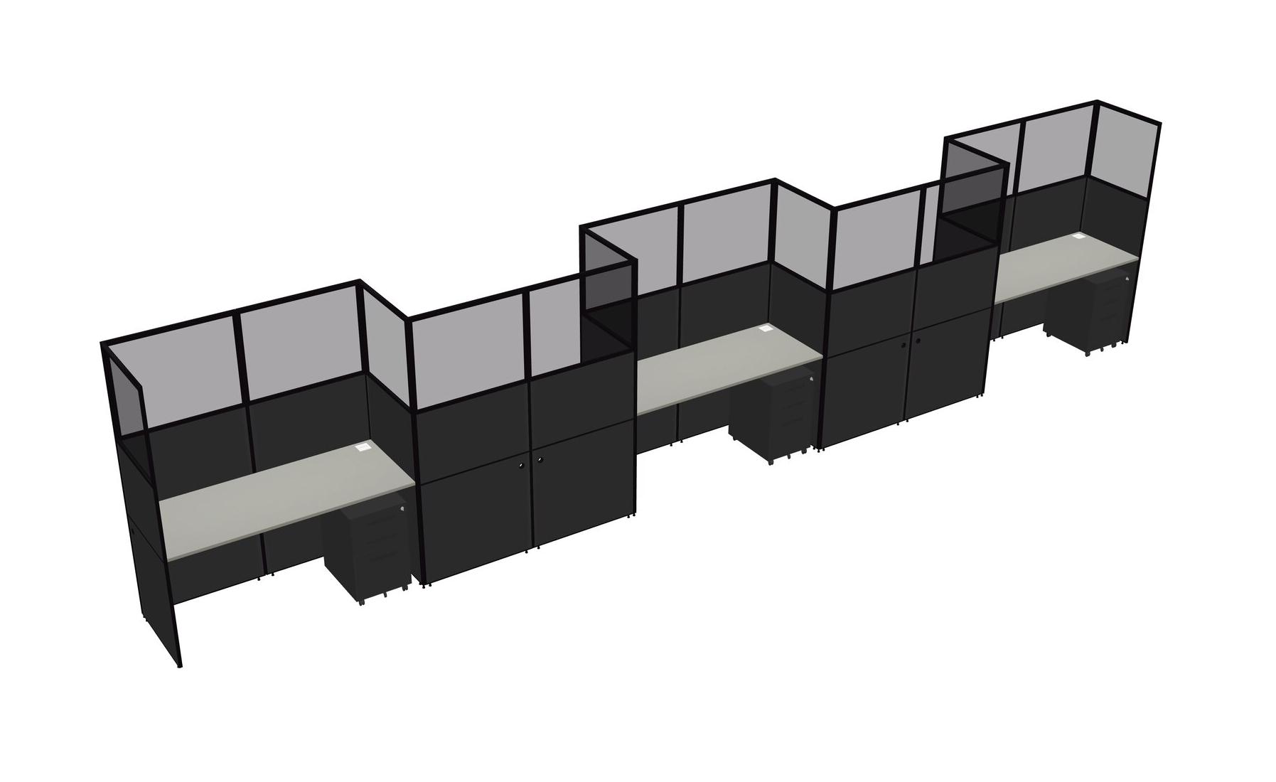 Grey Shadows Rectangular Cubicle Workstations For 5 - Zigzag Formation + Black Metal Mobile Drawers