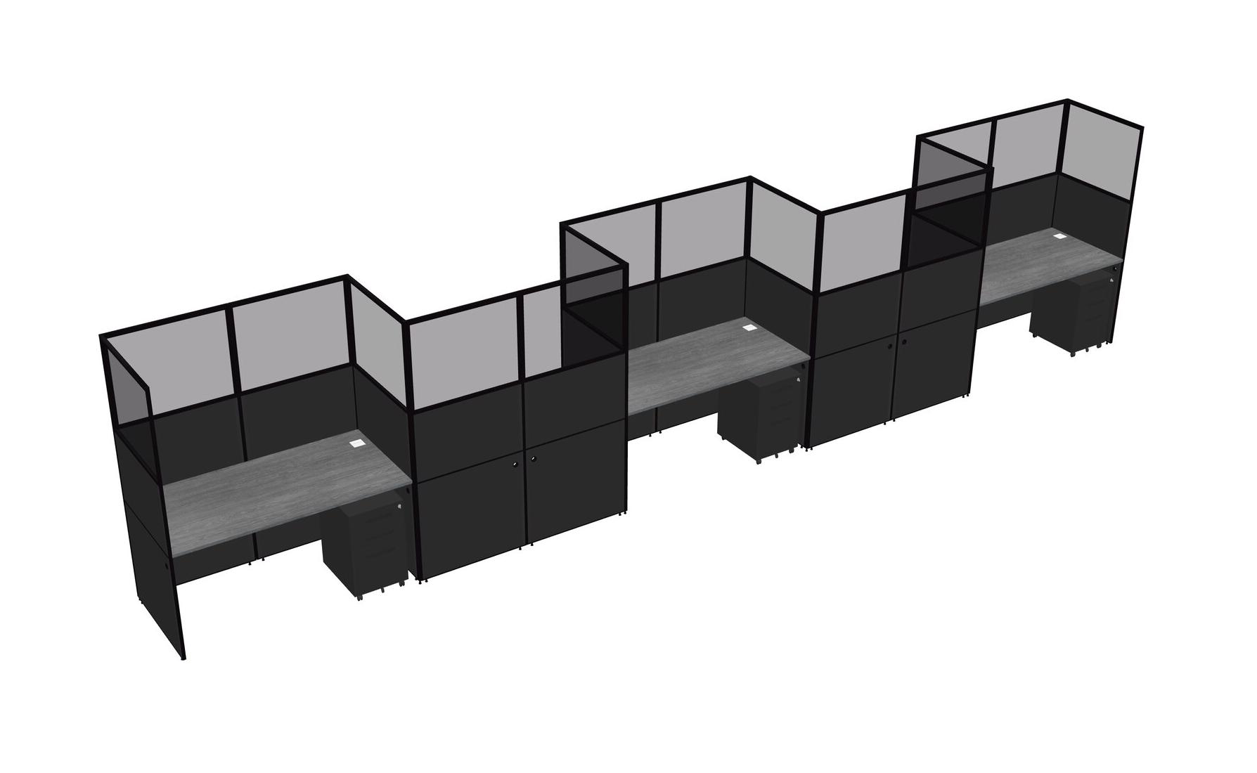 Grey Rectangular Cubicle Workstations For 5 - Zigzag Formation + Black Metal Mobile Drawers