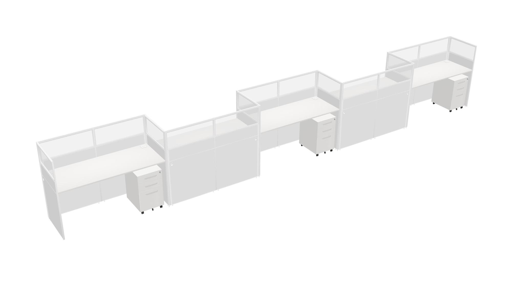 White Rectangular Cubicle Workstations For 5 - Zigzag Formation + White Metal Mobile Drawers