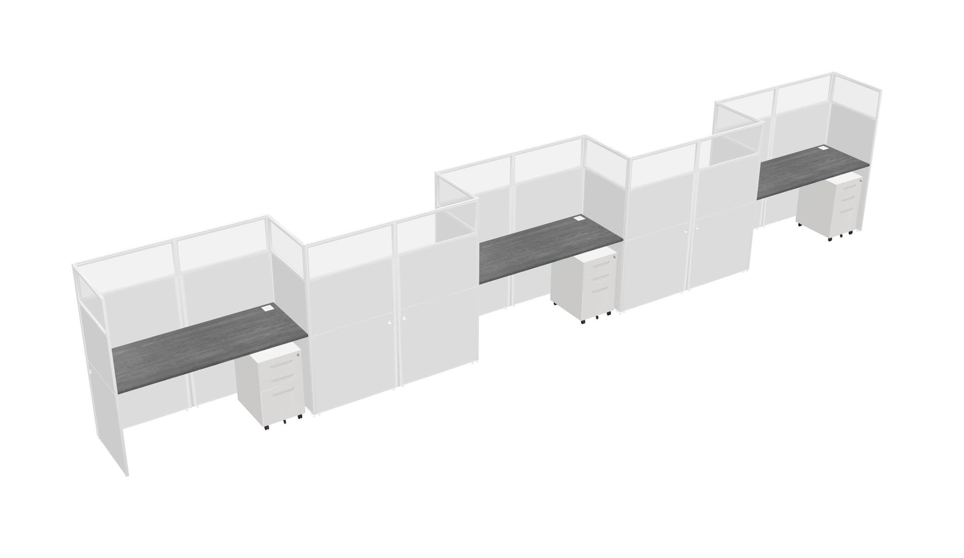 Grey Rectangular Cubicle Workstations For 5 - Zigzag Formation + White Metal Mobile Drawers