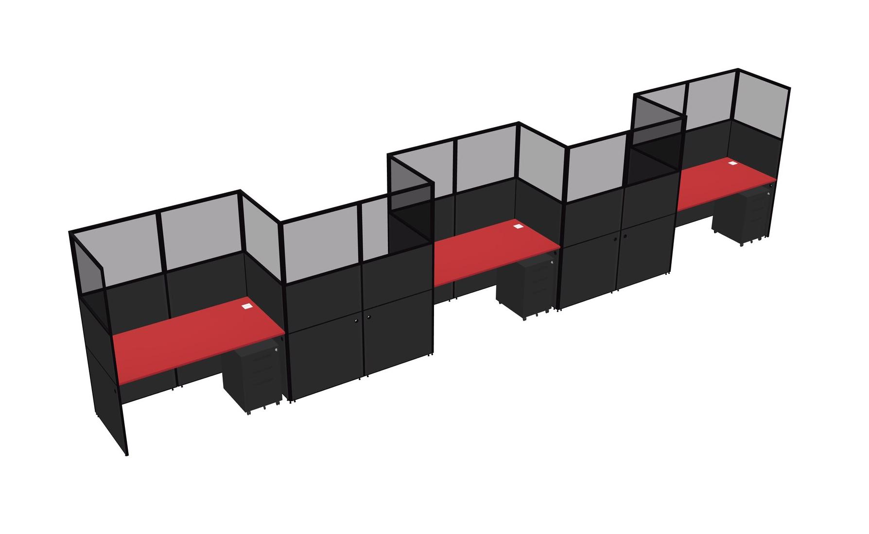Prism Red Rectangular Cubicle Workstations For 5 - Zigzag Formation + Black Metal Mobile Drawers