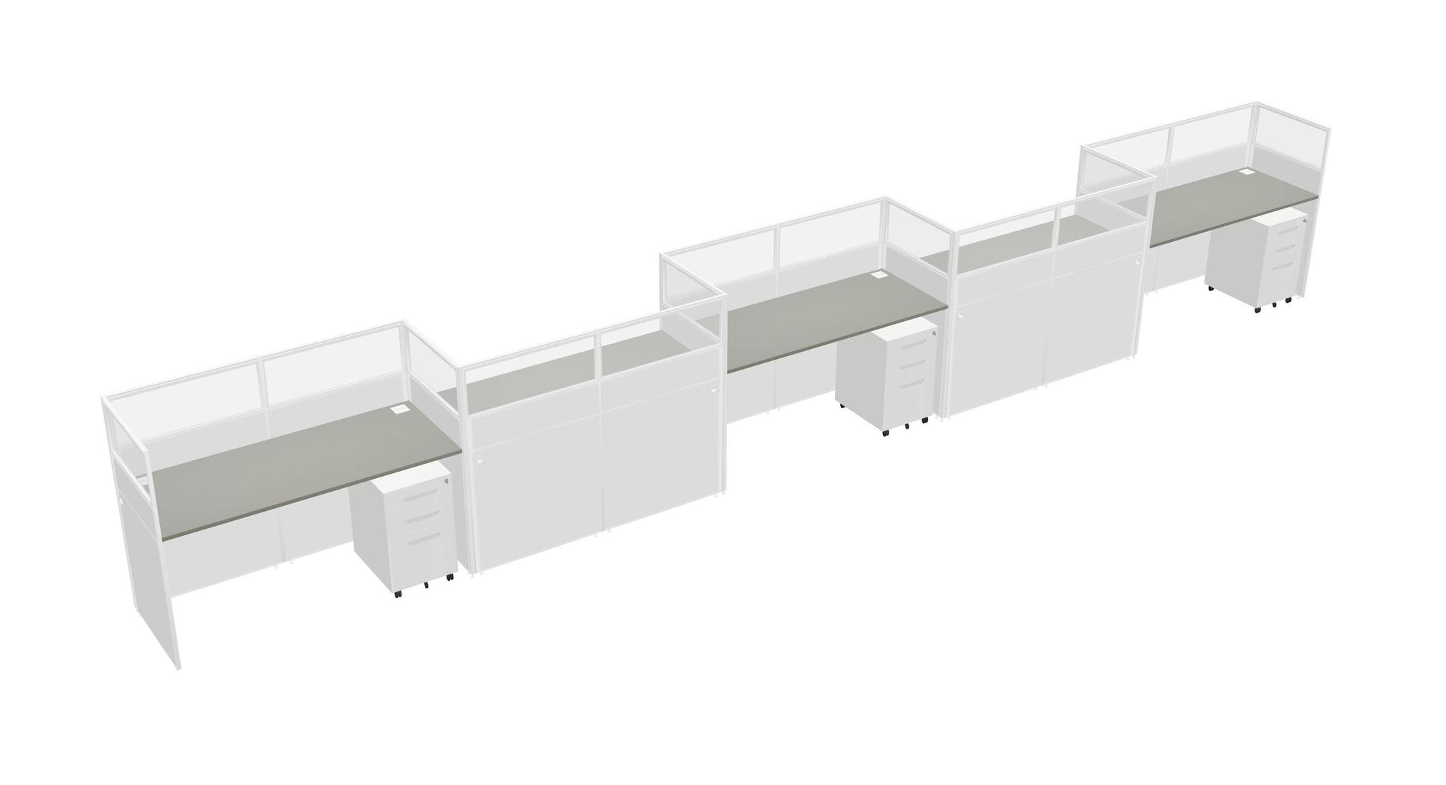 Grey Shadows Rectangular Cubicle Workstations For 5 - Zigzag Formation + White Metal Mobile Drawers