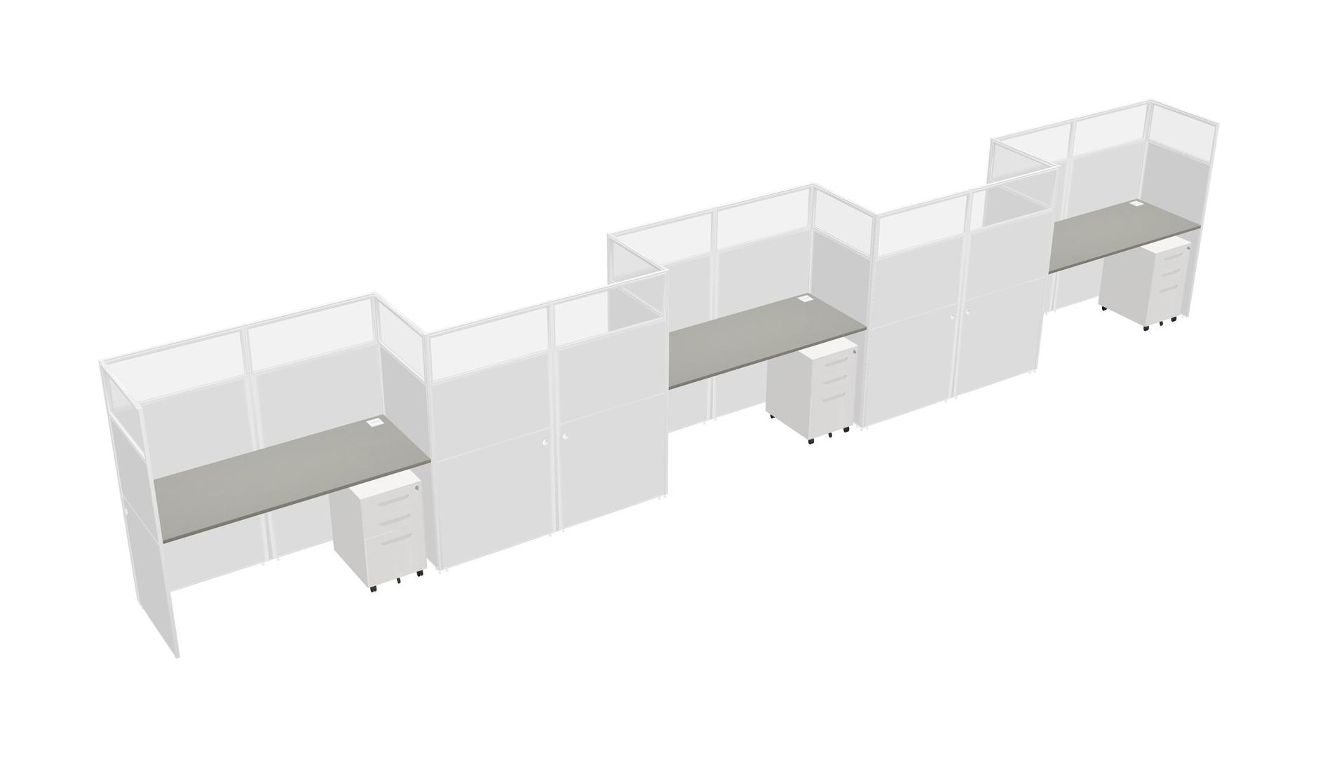 Grey Shadows Rectangular Cubicle Workstations For 5 - Zigzag Formation + White Metal Mobile Drawers