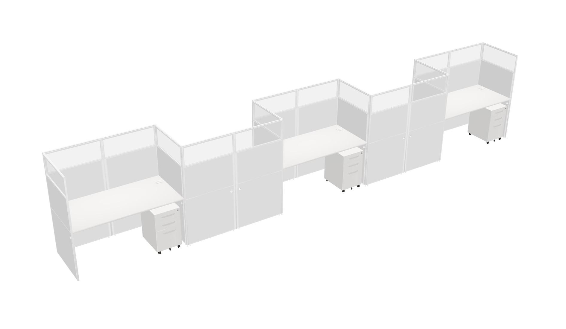 White Rectangular Cubicle Workstations For 5 - Zigzag Formation + White Metal Mobile Drawers