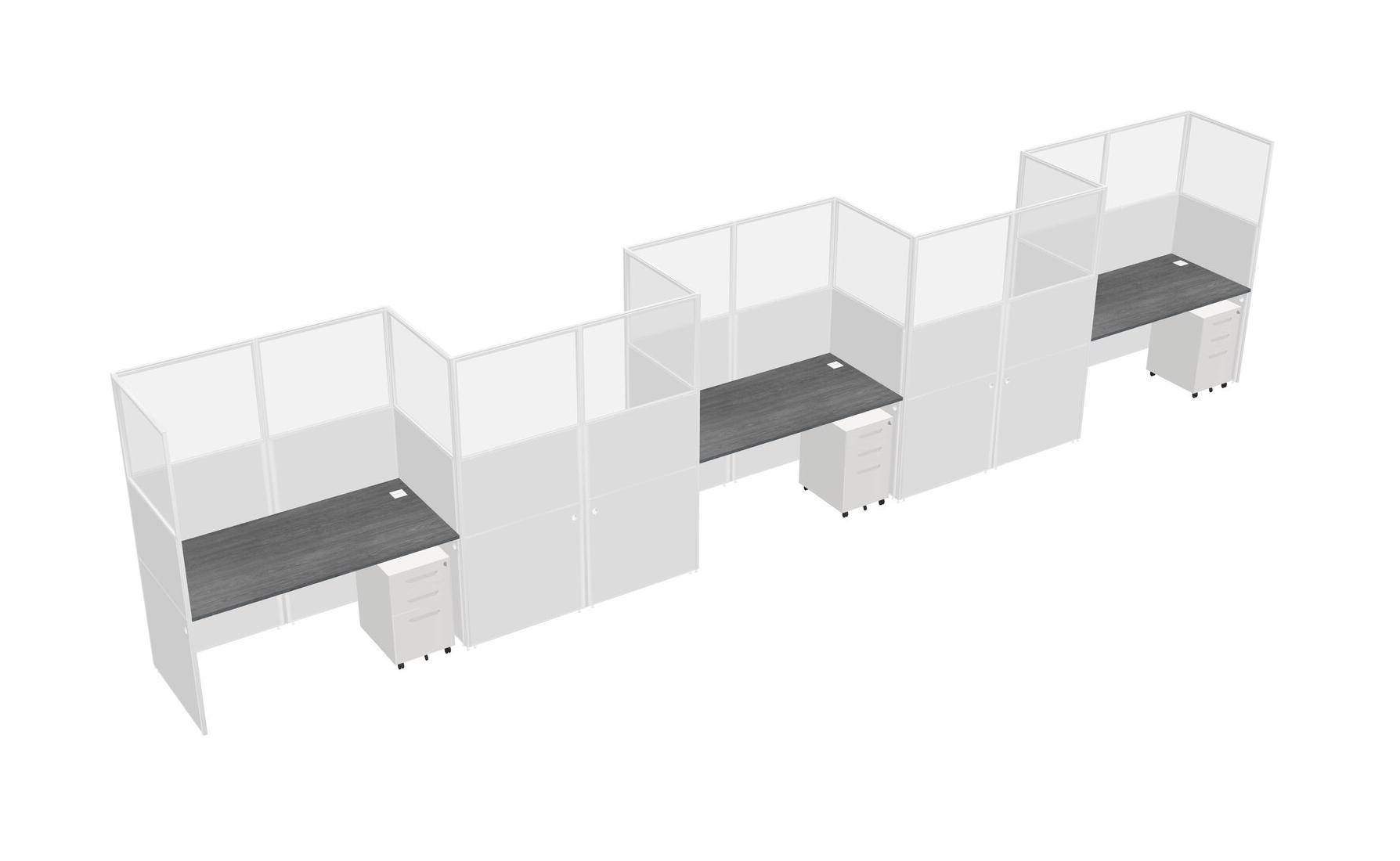 Grey Rectangular Cubicle Workstations For 5 - Zigzag Formation + White Metal Mobile Drawers