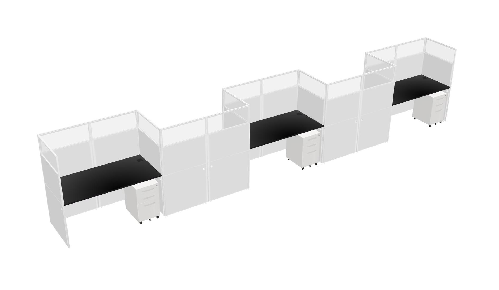Black Rectangular Cubicle Workstations For 5 - Zigzag Formation + White Metal Mobile Drawers