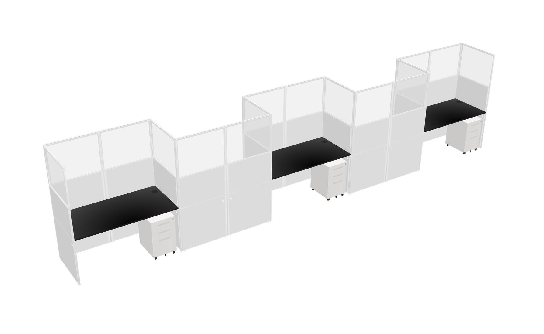 Black Rectangular Cubicle Workstations For 5 - Zigzag Formation + White Metal Mobile Drawers