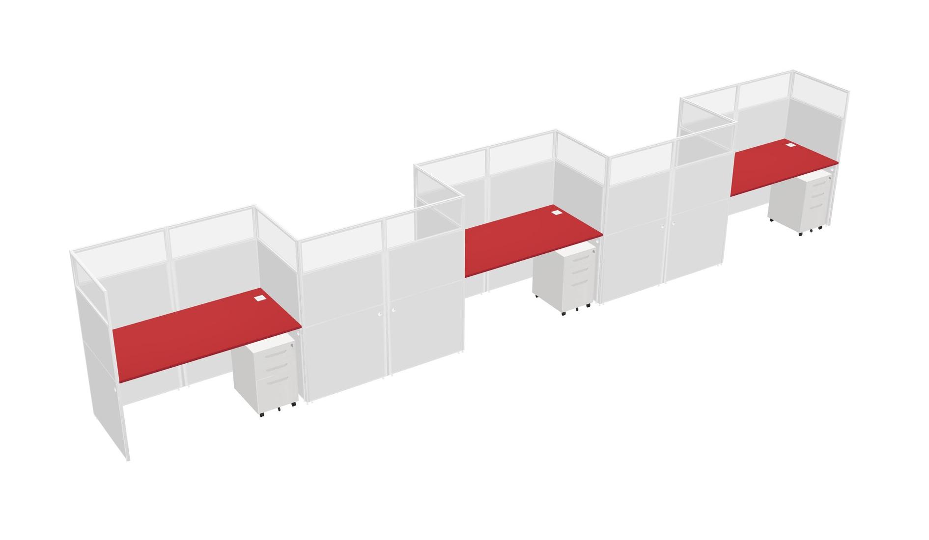 Prism Red Rectangular Cubicle Workstations For 5 - Zigzag Formation + White Metal Mobile Drawers
