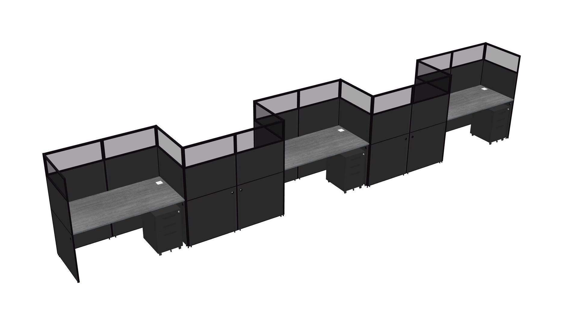 Grey Rectangular Cubicle Workstations For 5 - Zigzag Formation + Black Metal Mobile Drawers