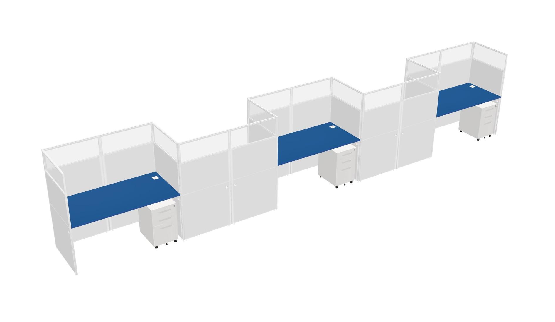 Prism Blue Rectangular Cubicle Workstations For 5 - Zigzag Formation + White Metal Mobile Drawers