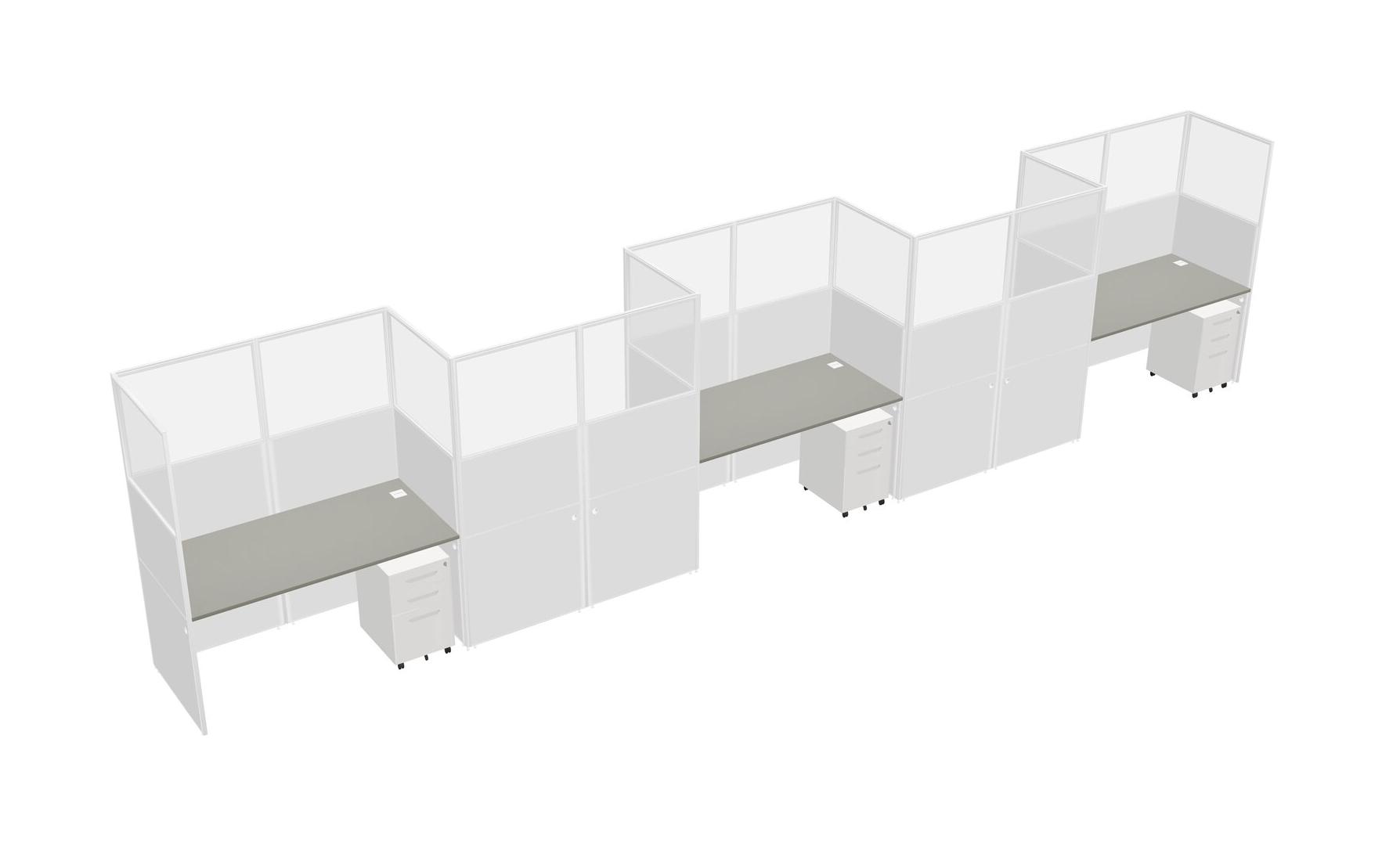 Grey Shadows Rectangular Cubicle Workstations For 5 - Zigzag Formation + White Metal Mobile Drawers