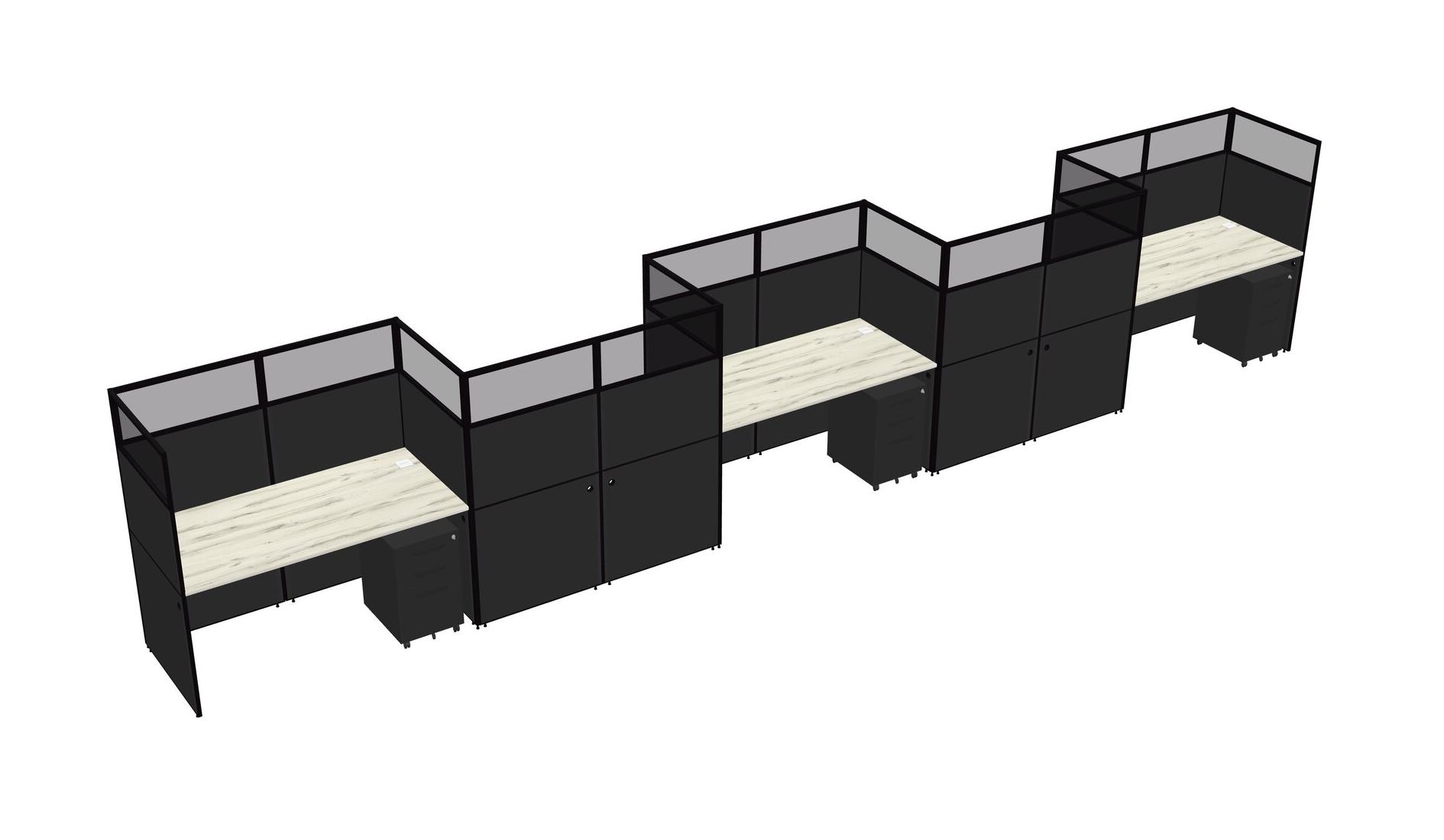 Heinne Holz Rectangular Cubicle Workstations For 5 - Zigzag Formation + Black Metal Mobile Drawers
