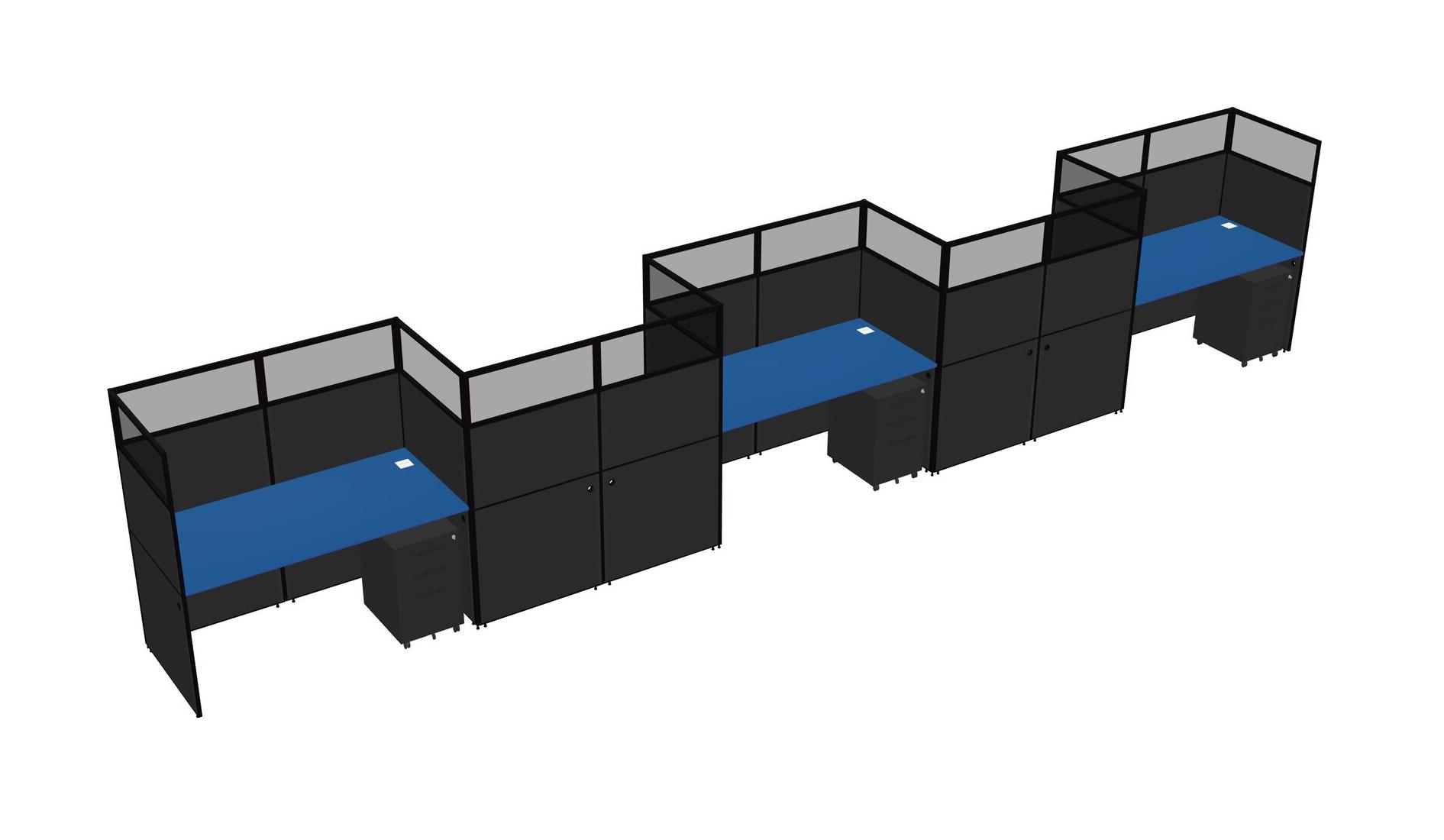 Prism Blue Rectangular Cubicle Workstations For 5 - Zigzag Formation + Black Metal Mobile Drawers