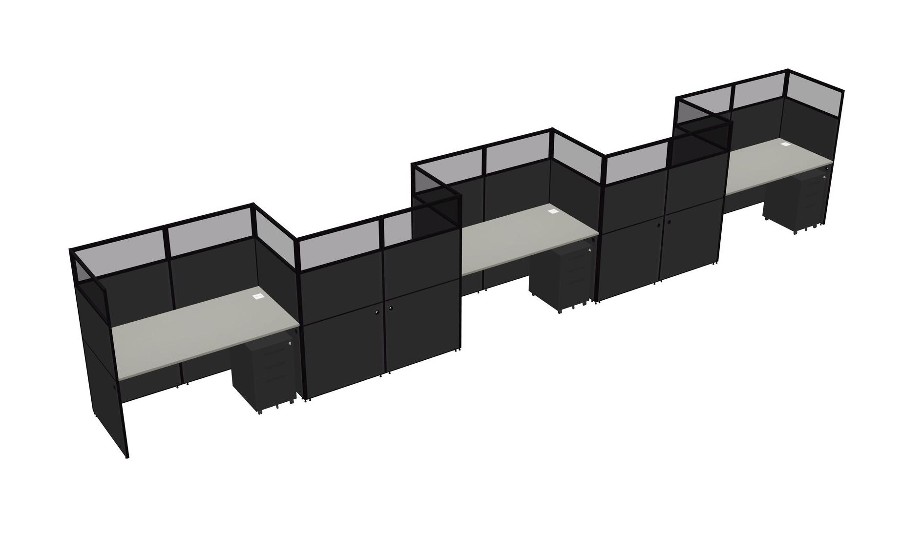 Grey Shadows Rectangular Cubicle Workstations For 5 - Zigzag Formation + Black Metal Mobile Drawers