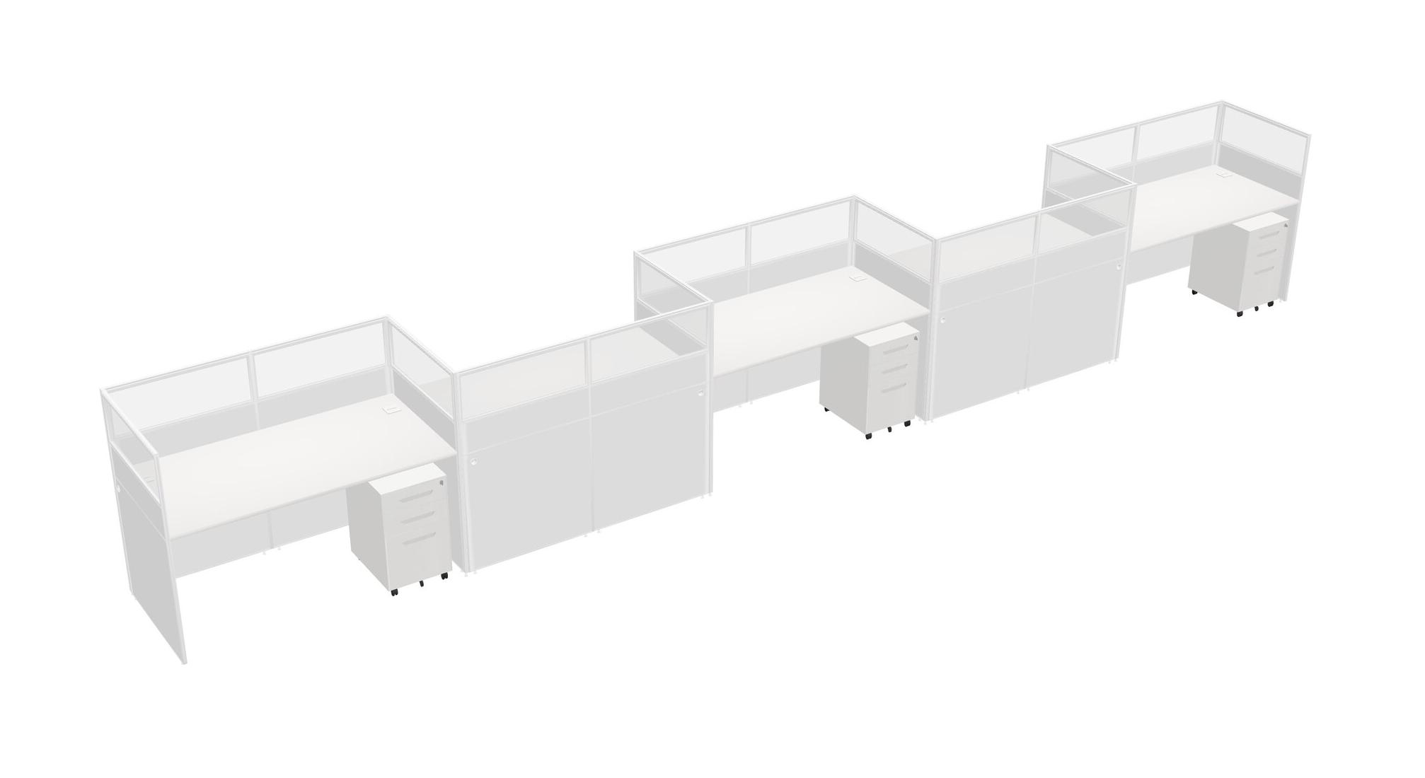White Rectangular Cubicle Workstations For 5 - Zigzag Formation + White Metal Mobile Drawers