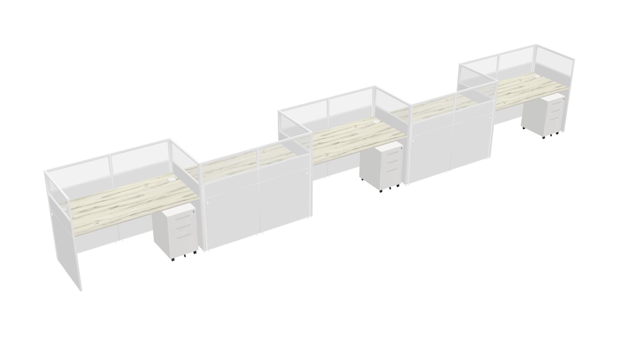 Heinne Holz Rectangular Cubicle Workstations For 5 - Zigzag Formation + White Metal Mobile Drawers