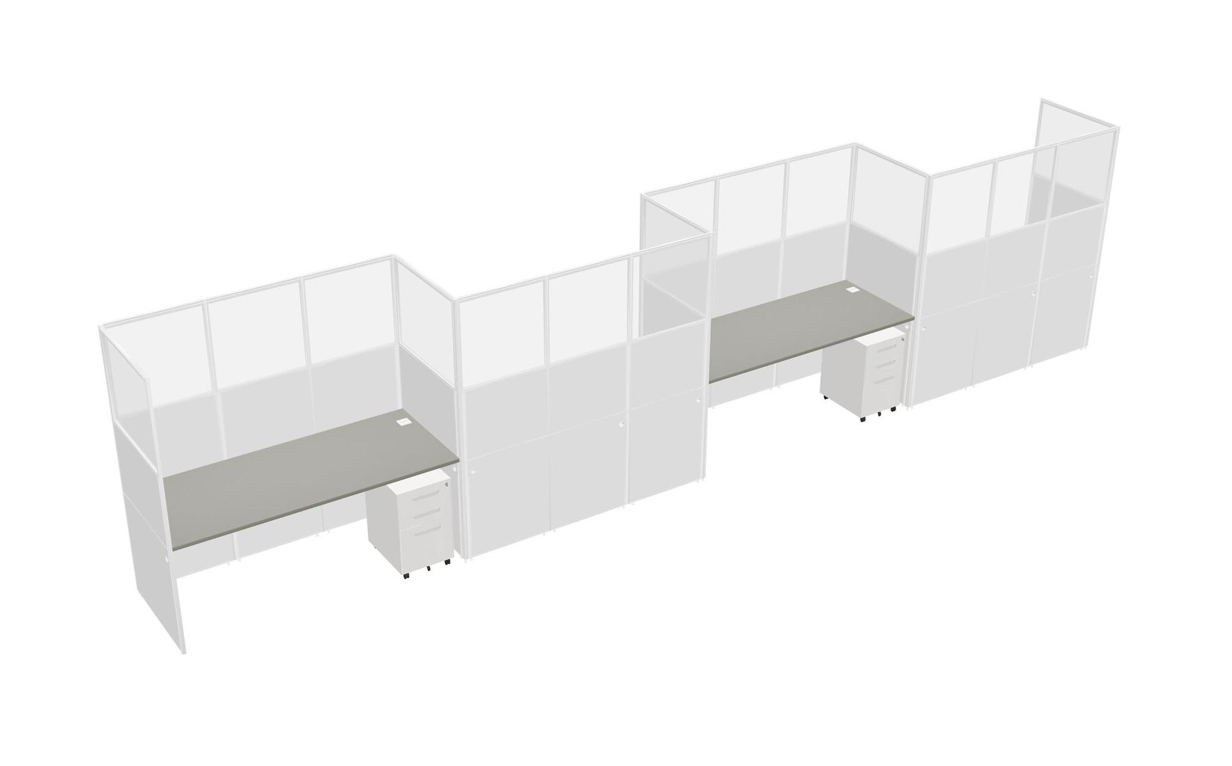 Grey Shadows Rectangular Cubicle Workstations For 4 - Zigzag Formation + White Metal Mobile Drawers