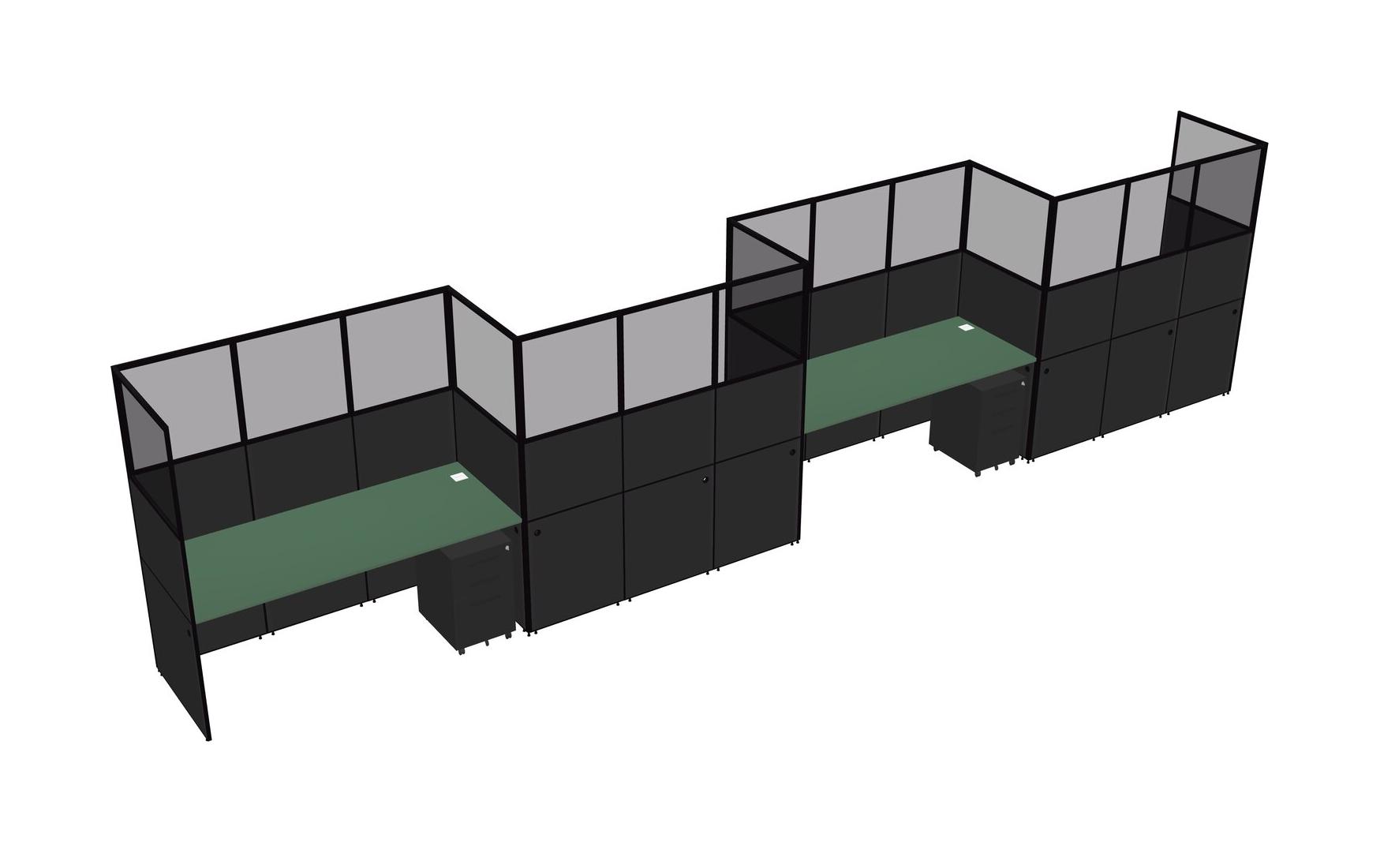 Green Rectangular Cubicle Workstations For 4 - Zigzag Formation + Black Metal Mobile Drawers
