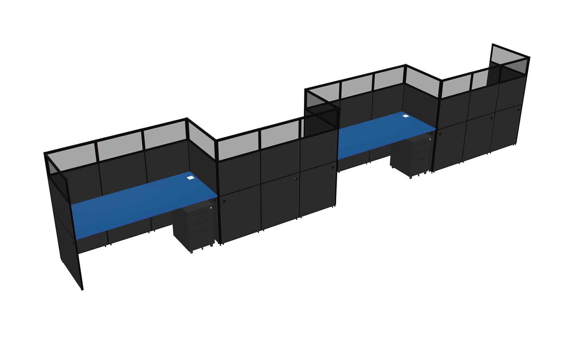 Prism Blue Rectangular Cubicle Workstations For 4 - Zigzag Formation + Black Metal Mobile Drawers