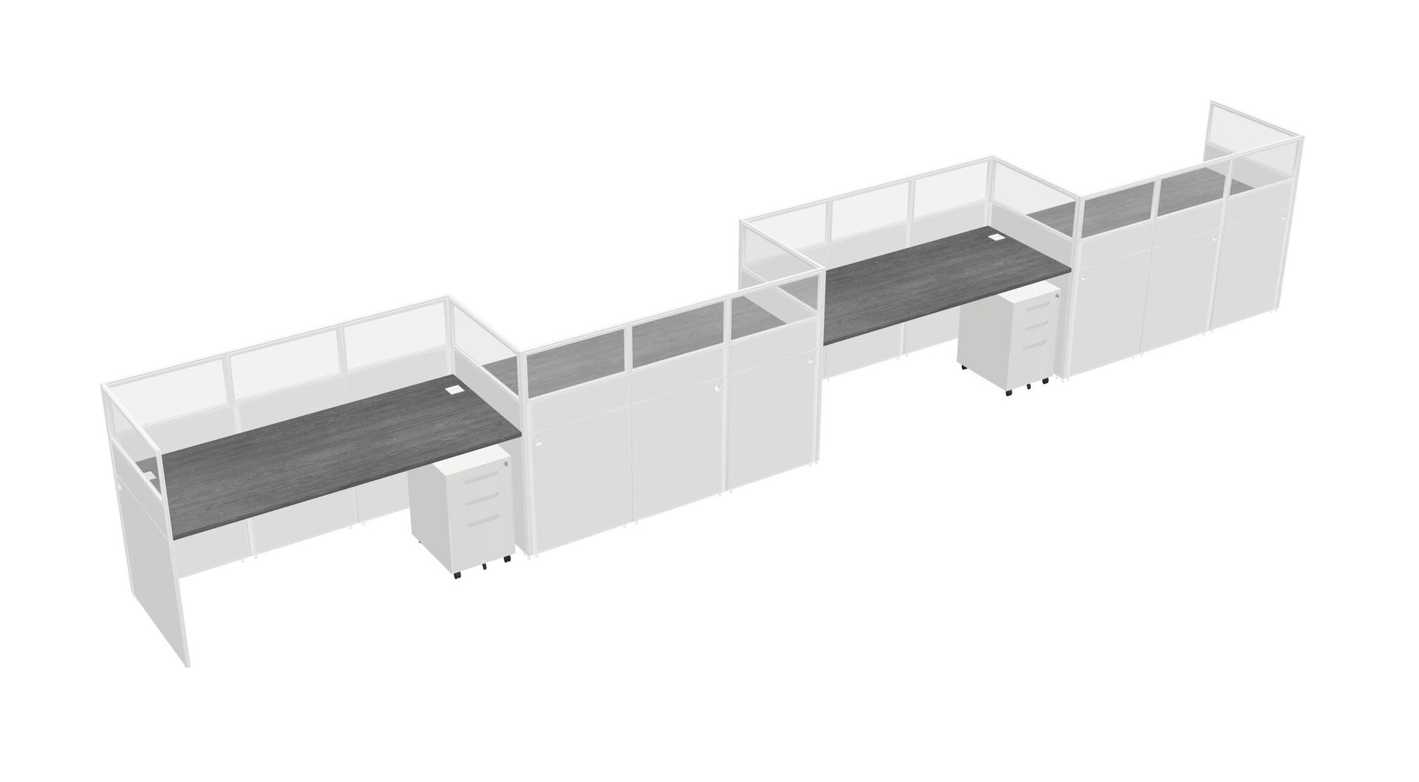 Grey Rectangular Cubicle Workstations For 4 - Zigzag Formation + White Metal Mobile Drawers
