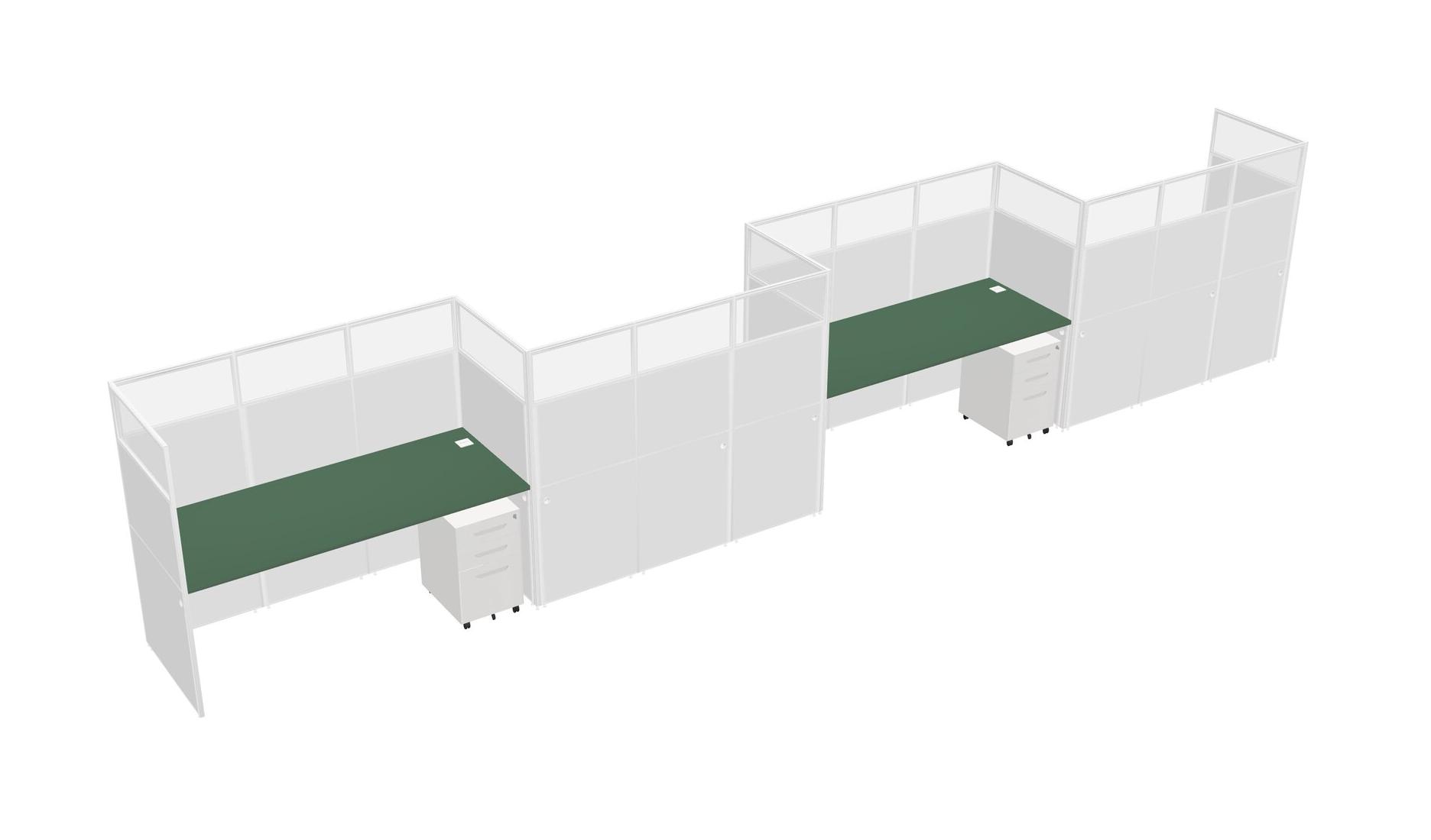 Green Rectangular Cubicle Workstations For 4 - Zigzag Formation + White Metal Mobile Drawers